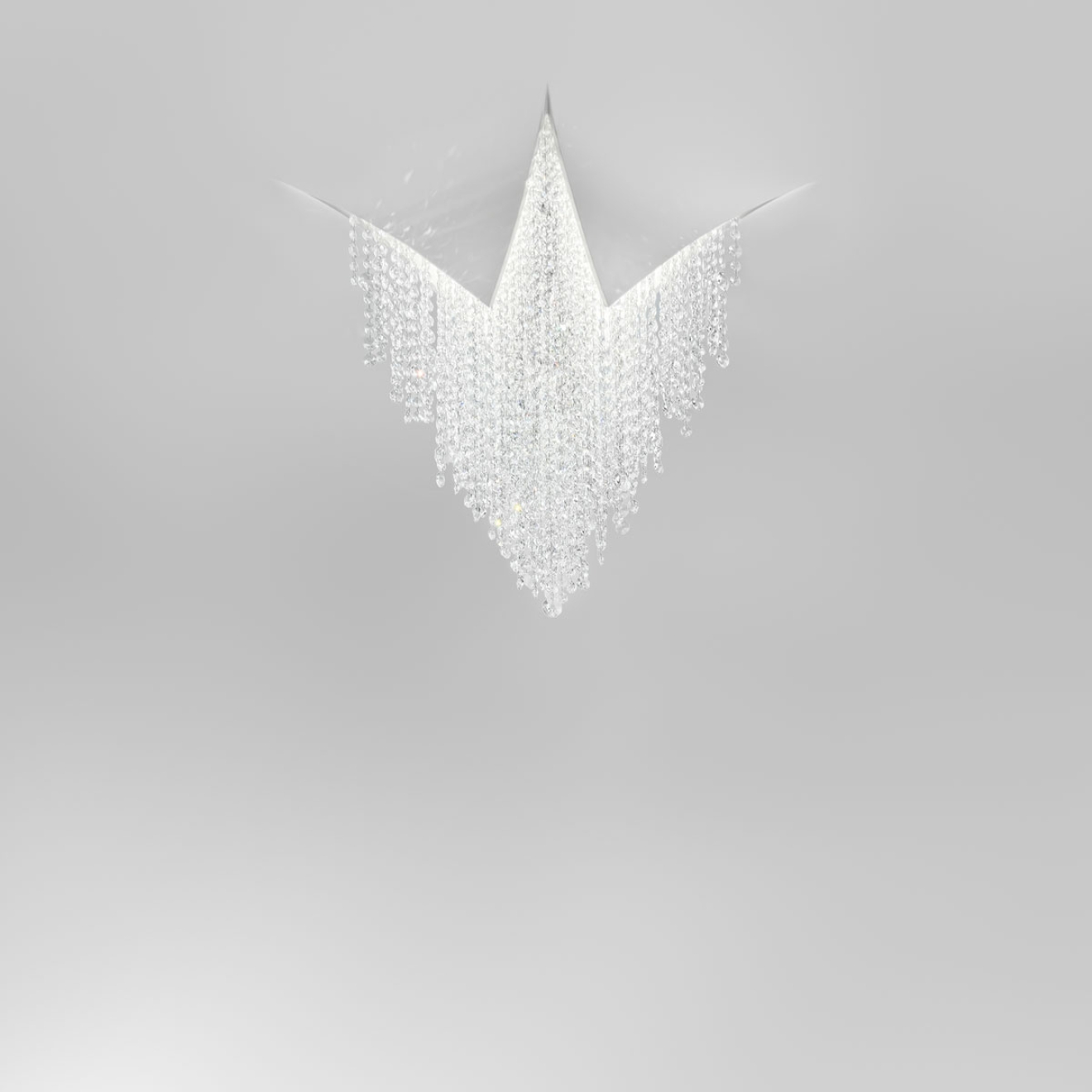 This innovative crystal light is a veritable source of inspiration and a perfect optical illusion: Creating an amazing ambiance, the colourful flow of sparkling crystals seems to burst directly out of the ceiling or wall. FONTE DI LUCE floods any room with pure fascination.
