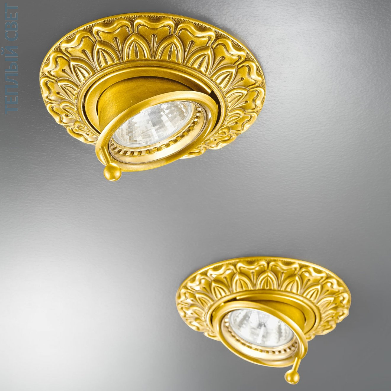 встраиваемый потолочный светильник с золотым корпусом и орнаментом