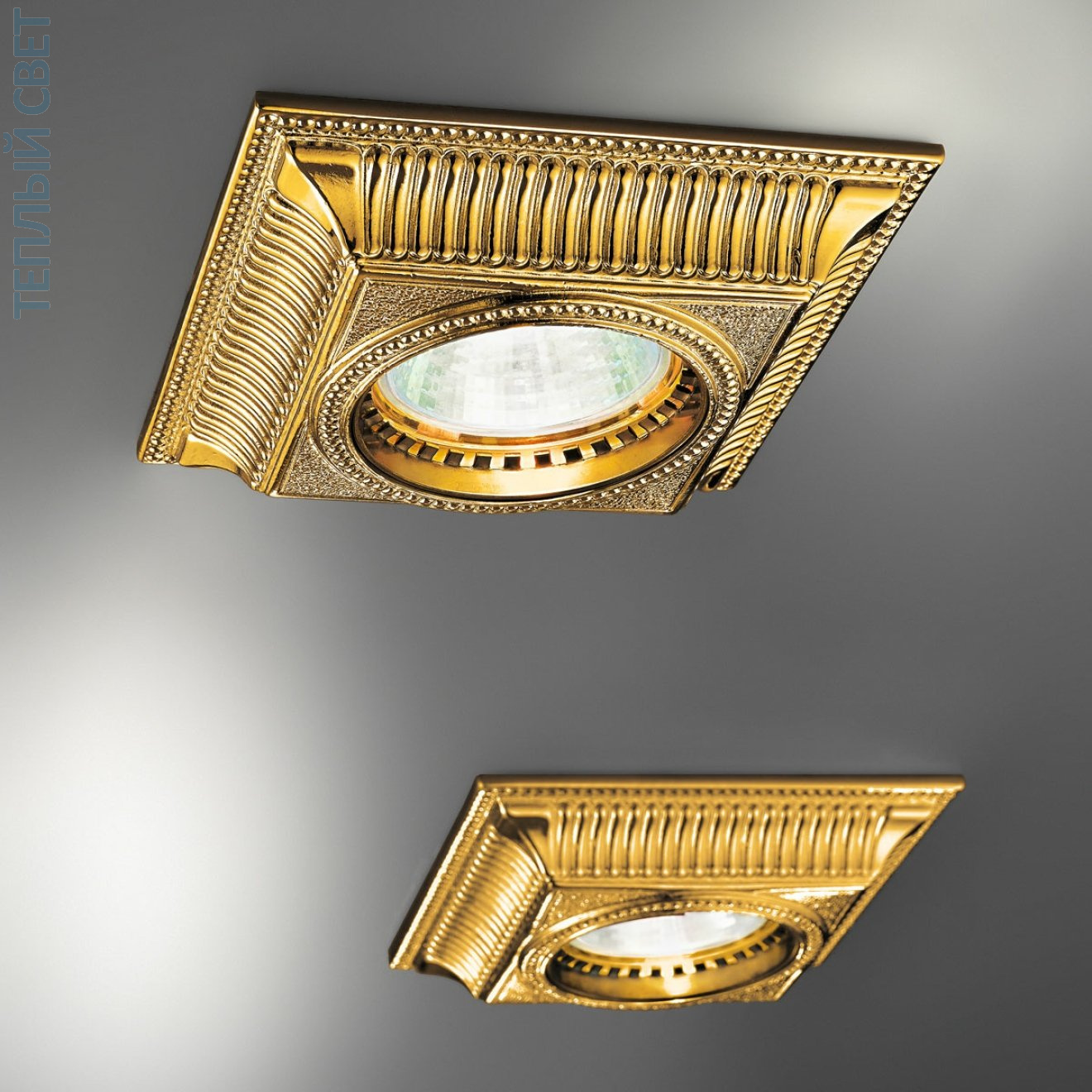 🆔 Встраиваемый потолочный светильник с квадратной рамкой золотого цвета Milord by Kolarz