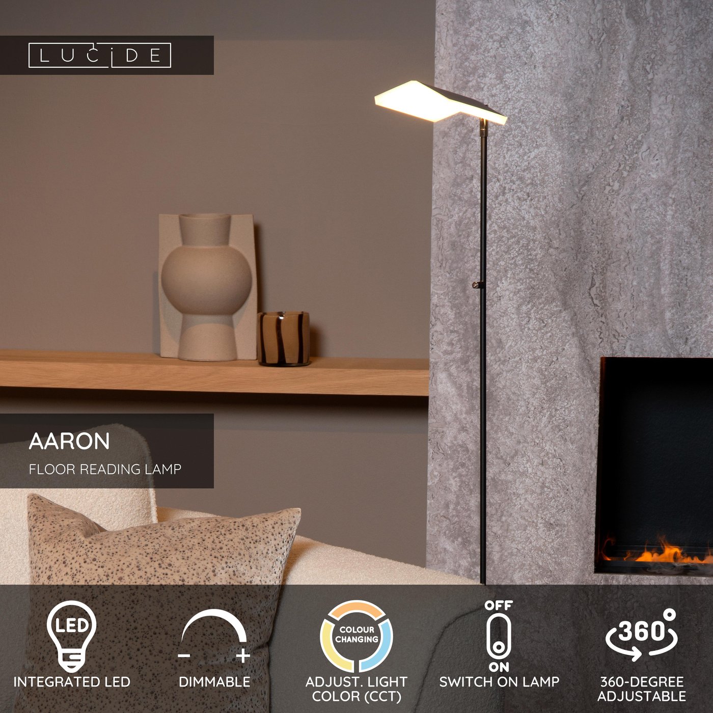 🆔 Напольный светильник с узкой стойкой и регулируемым плафоном для чтения черный AARON by Lucide