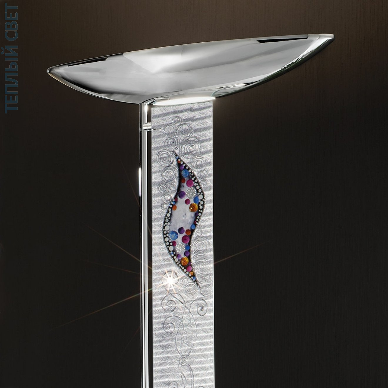 Дизайн торшера Kolarz Delphi очень утонченный и изысканный. Он состоит из металлического основания и изящной стеклянной абажура в форме цилиндра с декоративными элементами из кристаллов Swarovski. Это создает потрясающий эффект игры света и бликов, который придает интерьеру особый шарм и роскошь.