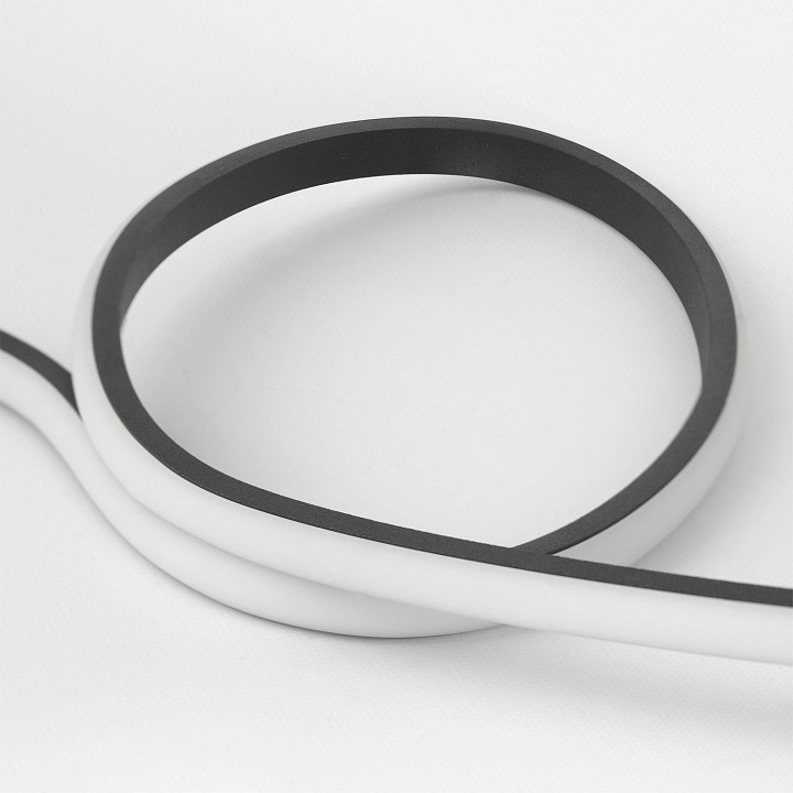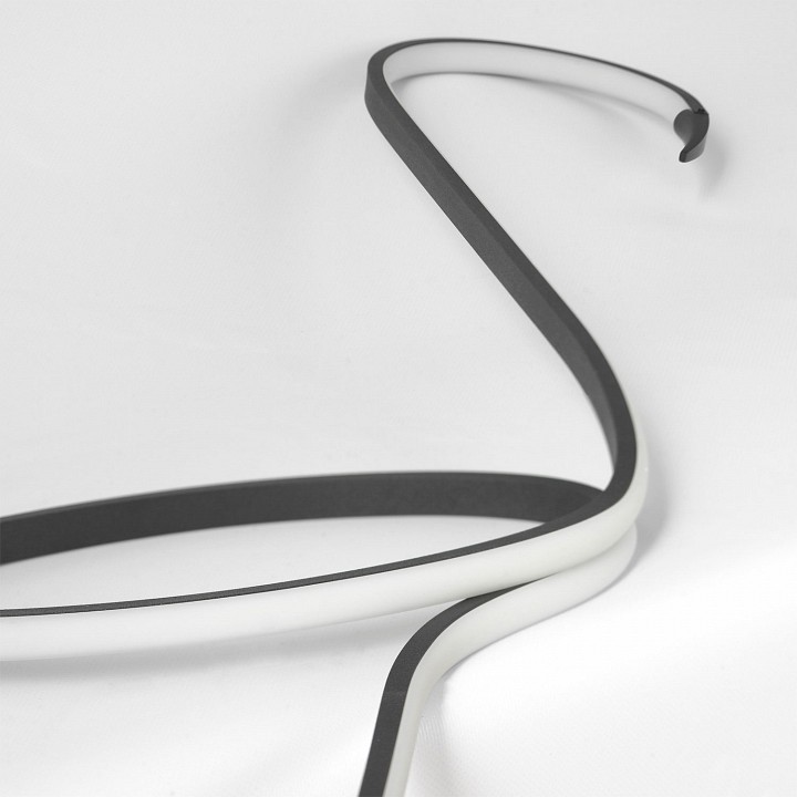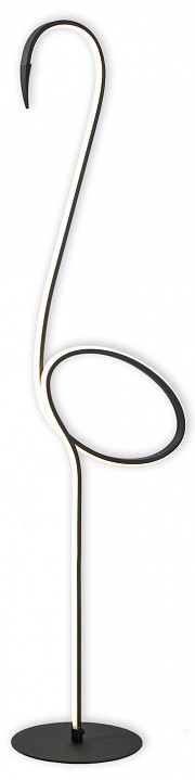 Напольный торшер с интегрированным светодиодным источником выполнен в виде изогнутой линии, переходящей в петлю, что задаёт направленное боковое распределение света вдоль всей длины светящегося элемента. Конструкция высотой 1300 мм установлена на круглое основание и не требует крепления, диаметр в плане 230 мм. Световая часть представляет собой непрерывный акриловый рассеиватель с встроенным LED, мощность 14 Вт, световой поток 1260 лм при цветовой температуре 4000 К. Арматура металлическая, в чёрном цвете, поверхность матовая. Подключение к сети 220 В, степень защиты IP20, подходит для локального освещения в жилых помещениях площадью до 7 м².