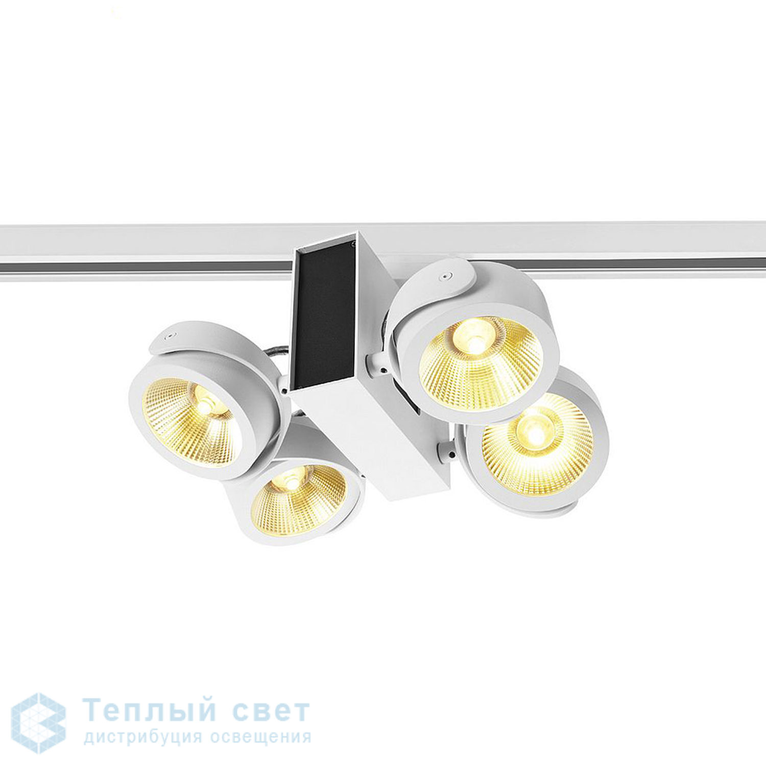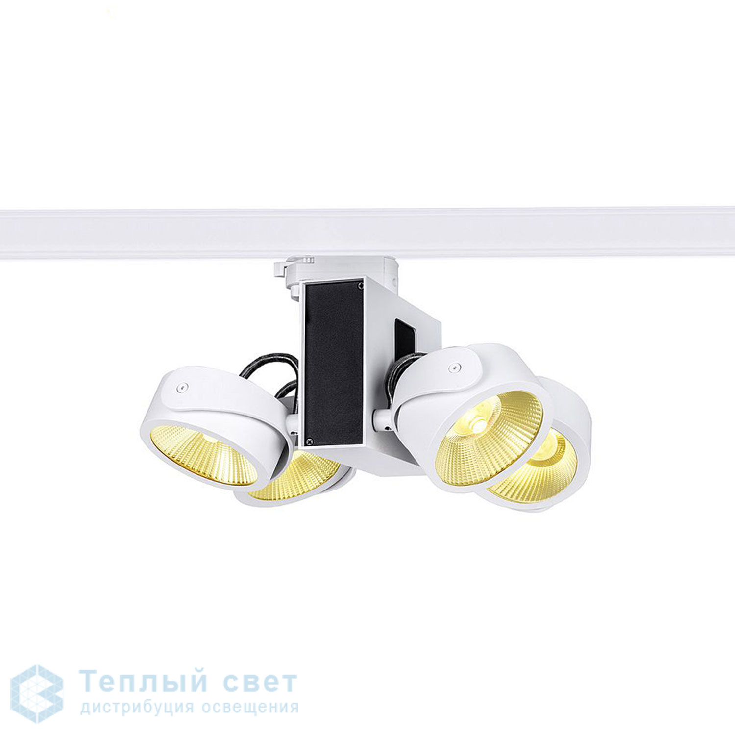 🆔 Трековый четырёхламповый потолочный светильник бело-чёрного цвета для трёхфазного шинопровода белый KALU by SLV