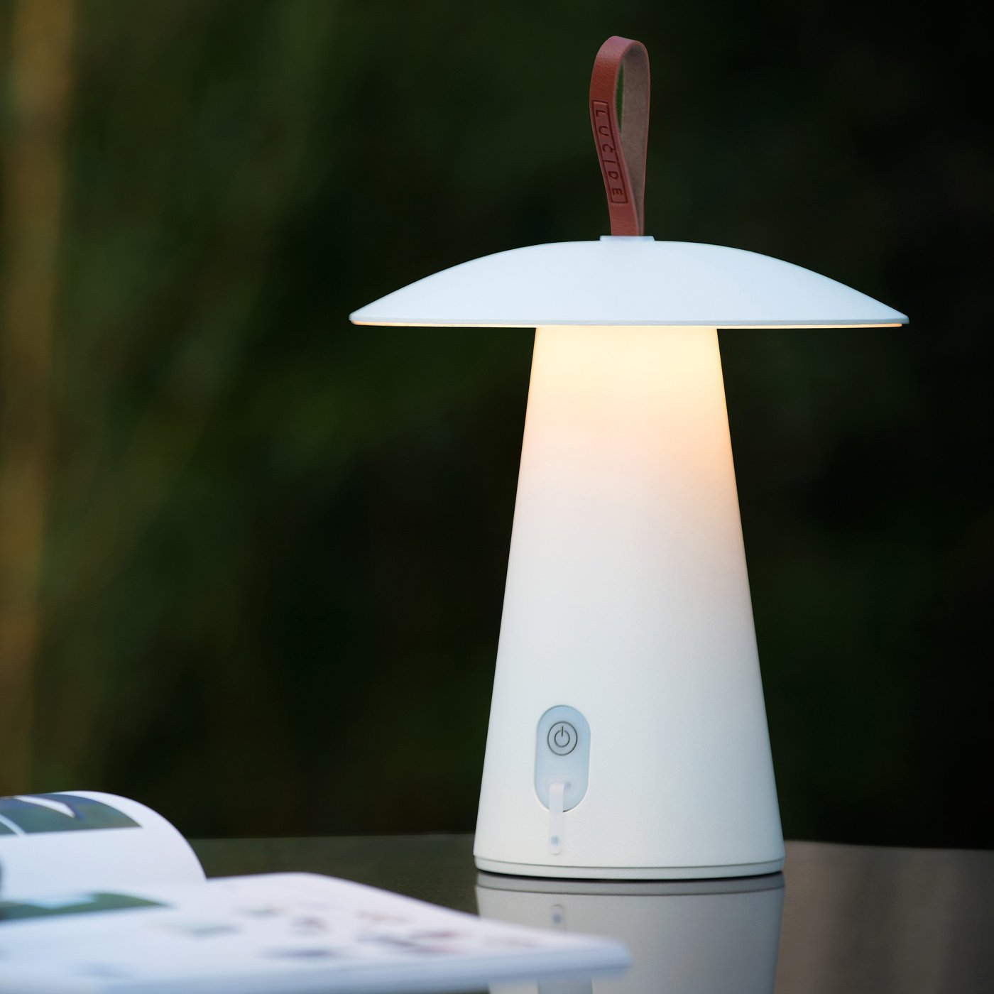 Тёплый летний вечер или уютный зимний? Неважно, вы смотрите на улицу и видите Ла Донну. Элегантный, современный дизайн, вдохновлённый осенними грибами. Вам ещё нужно убеждать вас, что Ла Донна уместна в каждом саду и в любое время года? Эта настольная лампа изготовлена из высококачественного алюминия и специально разработана для длительного и прочного использования на открытом воздухе. Вы можете включать и выключать её с помощью сенсорного датчика. С помощью этого же датчика можно регулировать яркость лампы. Встроенный светодиодный источник света излучает тёплый белый свет. Заряжается лампа через USB-кабель. После этого она будет дарить вам тепло и уют в течение шести часов.