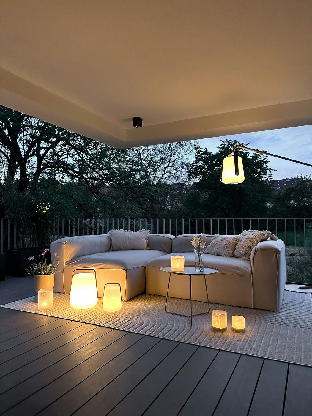 Комплект из трех ламп Balad от Fermob, идеально подходящий для использования на открытом воздухе.