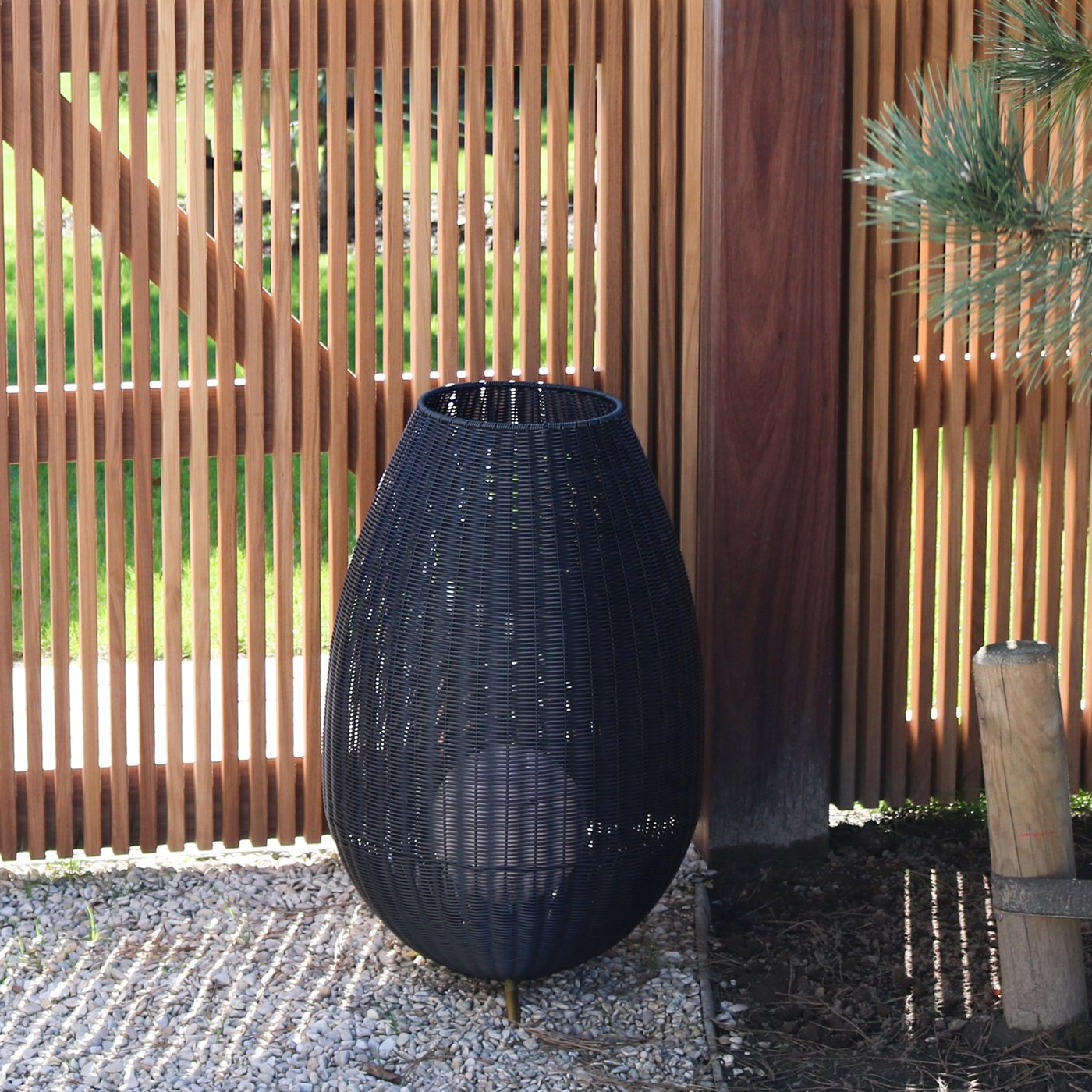 уличный торшер с высоким овальным абажуром из ротанга