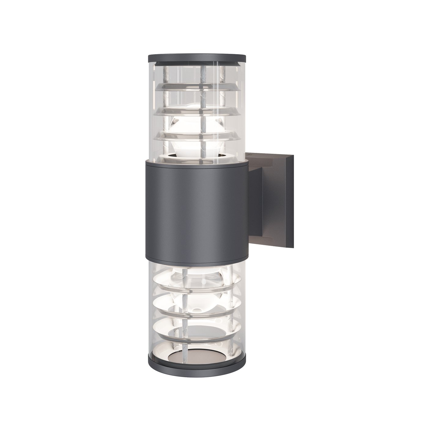 Настенный светильник Maytoni Bronx — это лаконичное решение для уличного и фасадного освещения в современном стиле. Цилиндрическая форма с выраженной вертикалью смотрится строго и архитектурно, а серый цвет алюминиевой арматуры легко вписывается в экстерьеры домов, террас и входных групп. Антибликовая решётка в оптической части мягко рассеивает свет, снижая слепящий эффект и предотвращая световое загрязнение, что особенно важно для садово-парковых пространств и жилых зон. Светильник рассчитан на две лампы с цоколем E27 и обеспечивает равномерное освещение вверх и вниз, создавая выразительный световой рисунок на стене. Корпус из алюминия устойчив к коррозии, а плафон из прочного пластика хорошо переносит перепады температур. Степень защиты IP54 позволяет использовать модель на улице круглый год — на фасадах, заборах, колоннах и в зонах входа. Bronx подчёркивает архитектуру здания и добавляет аккуратный, современный акцент без излишнего декора.