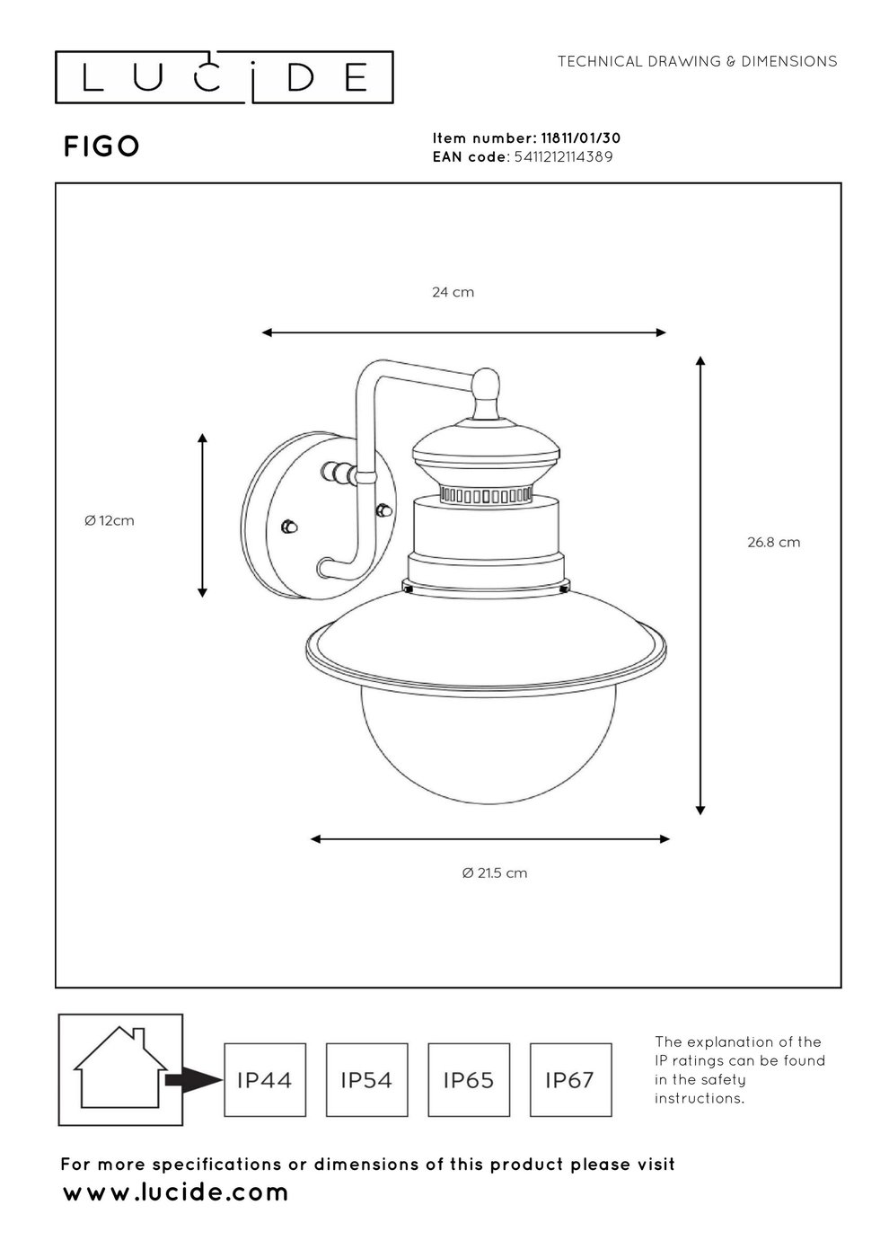 11811/01/30 Lucide Figo уличный настенный светильник с округлым плафоном и металлическим козырьком чёрного цвета