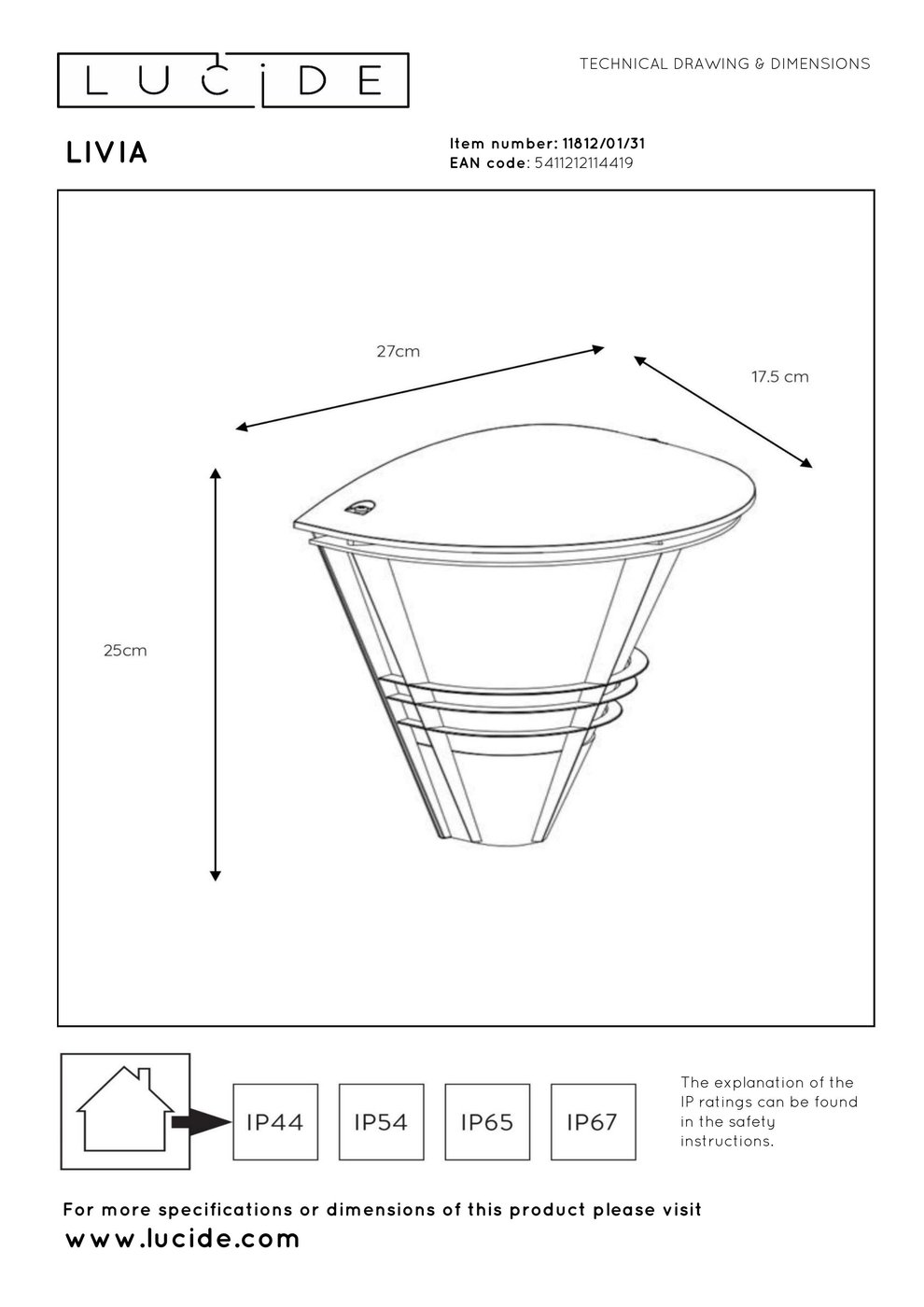 Вы уже знакомы с Livia? Этим прекрасным уличным светильником, который тронет любого прохожего? Благодаря своему девственно-белому цвету этот настенный светильник — признанный лидер в мире уличного освещения. И как может быть иначе? Помимо внешней привлекательности, стоит отметить и его яркость. Светильник рассчитан на мощность до 60 Вт. Благодаря высоте 25 сантиметров вы всегда будете хорошо видеть освещение. И самое главное: Livia уделяет большое внимание энергоэффективности.