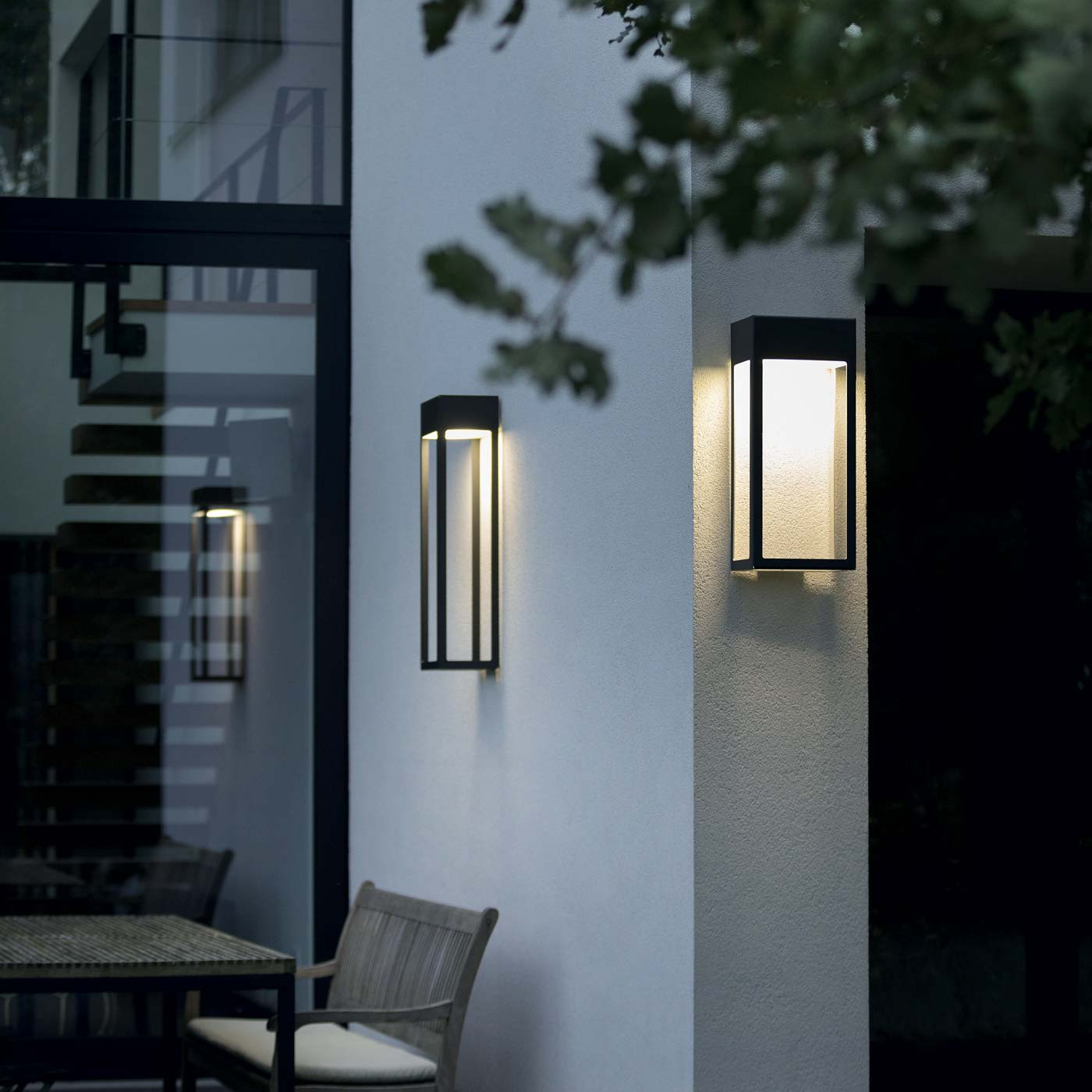 Светодиодный уличный настенный светильник Roger Pradier Hogar N°1 из алюминия, обработанного лазером, с сатинированным диффузором из метакрилата сверху. Без регулировки яркости. Степень защиты IP65.