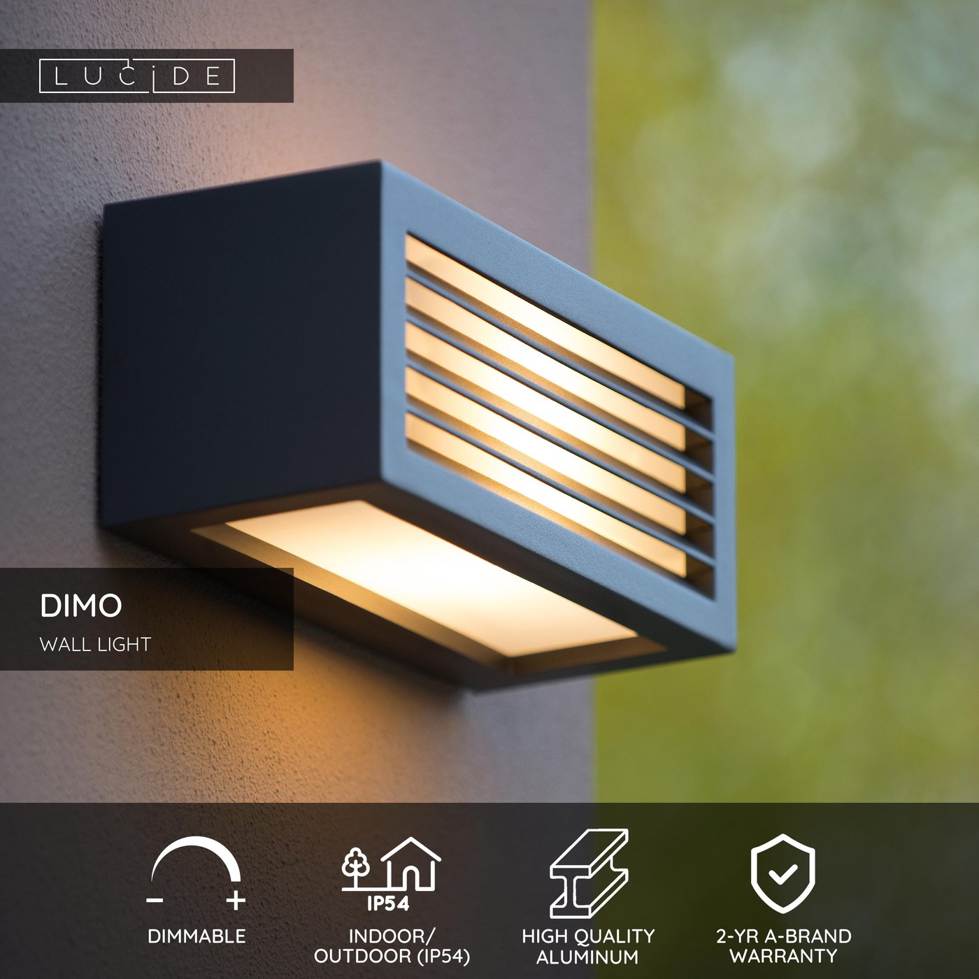 Dimo — это забавный настенный светильник для улицы. Конечно, Dimo можно использовать и в помещении, но он полностью раскрывает свои возможности на открытом воздухе. Dimo легко устанавливается на наружной стене. Он обеспечивает комфортное освещение, которое не только создаст уют в вашем саду, на террасе или патио, но и повысит их функциональность. Яркость идеальная: не слишком яркая, но и не слишком тусклая. Благодаря этому вы сможете с комфортом наслаждаться приятными вечерами на свежем воздухе. Dimo также легко подключается к диммеру.