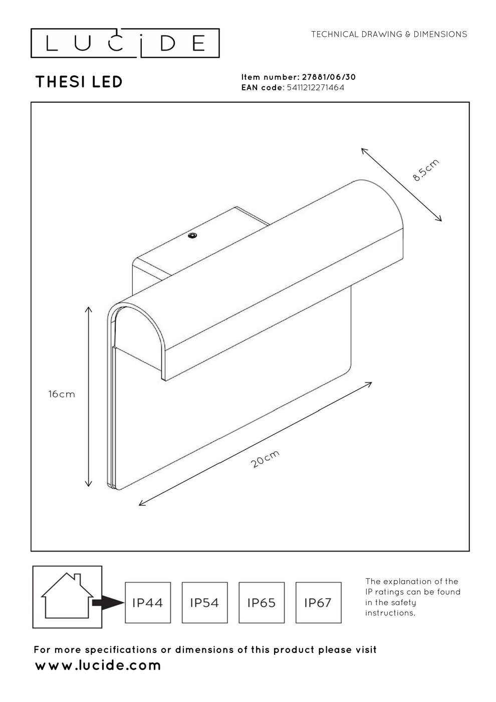Хотите стильно подчеркнуть свой адрес? Используйте светодиодный светильник Thesi LED. Этот настенный светильник — лидер в области адресного освещения. Этот настенный светильник с прочной алюминиевой рамой стильно привлечёт внимание к вашему дому. Беспокоитесь о последствиях сильного дождя? Не стоит, ведь у Thesi LED класс защиты IP 54. Для тех, кто не знает: это означает, что этот настенный светильник довольно устойчив к дождю. Он также оснащён встроенным светодиодным источником света. С Thesi LED ваш адрес приобретает новое значение. И этот настенный светильник этим по праву гордится.