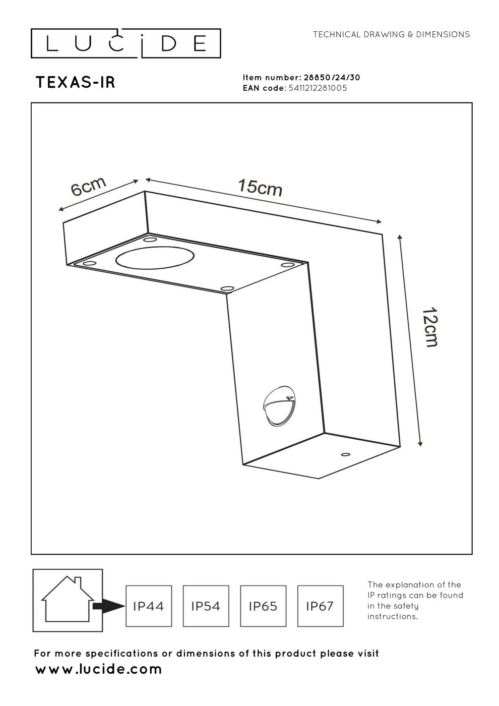 28850/24/30 Lucide Texas-ir уличный настенный светильник с датчиком движения и направленным светом вниз