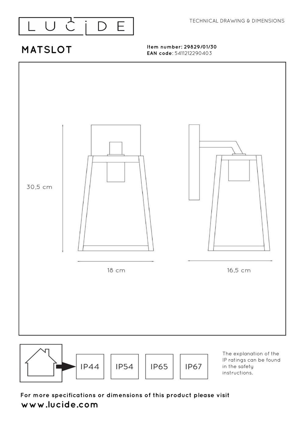 29829/01/30 Lucide Matslot уличный настенный светильник в форме фонаря с прозрачными стенками