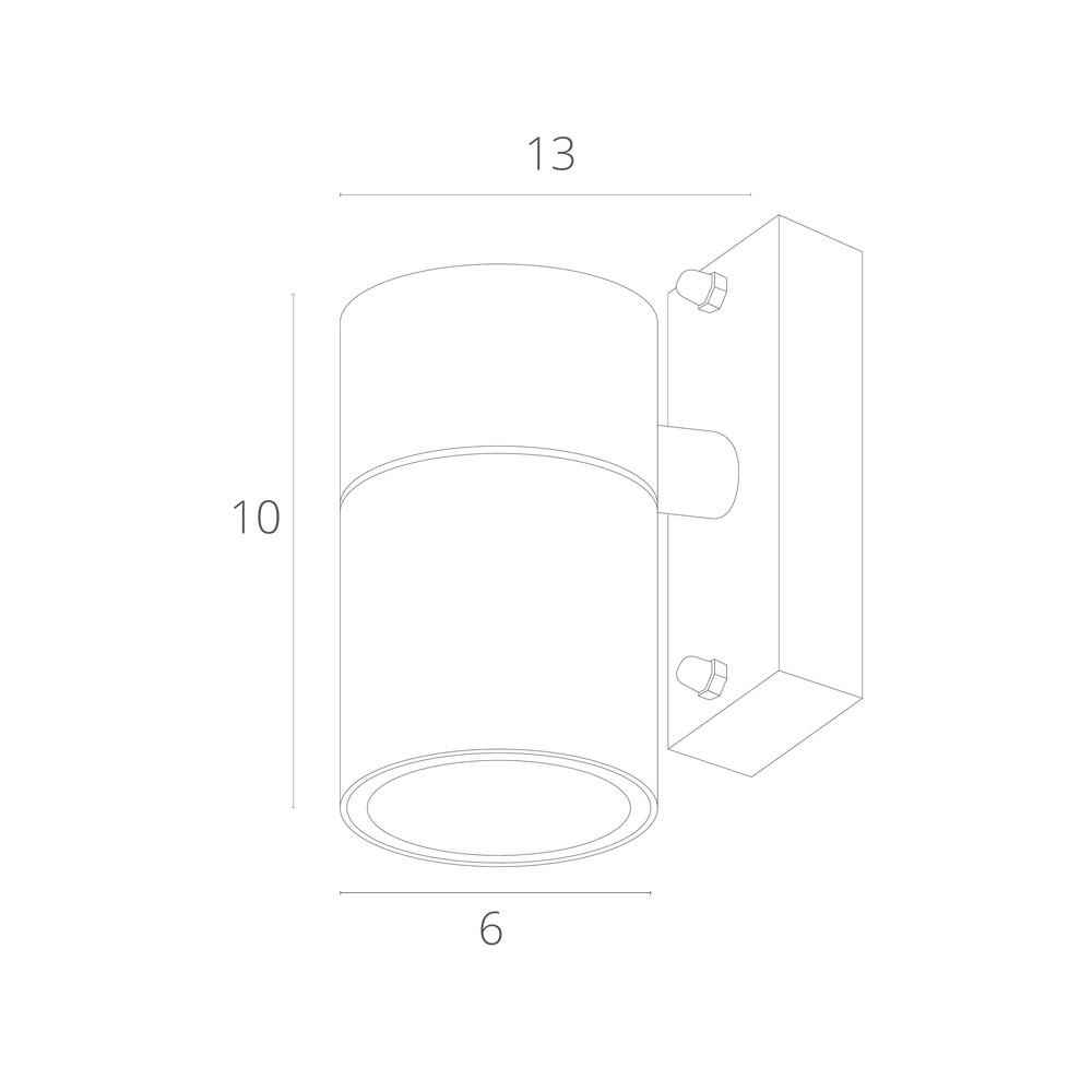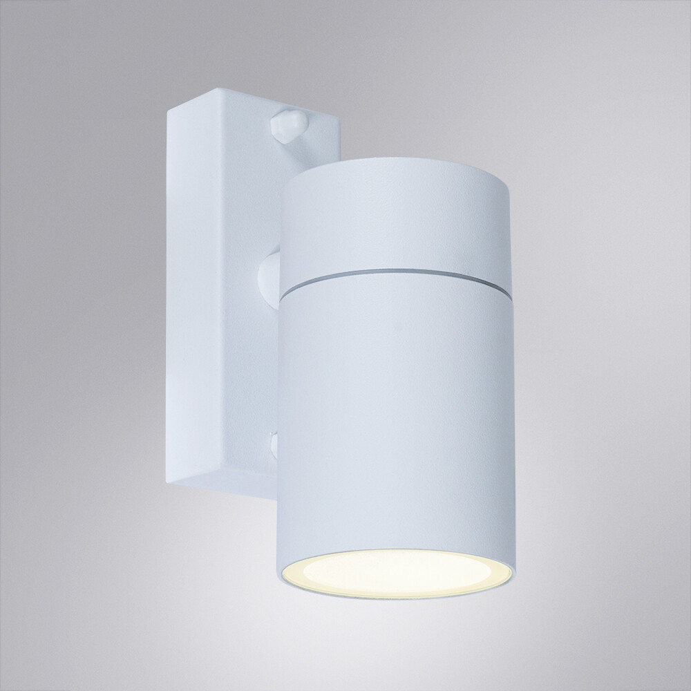 Фасадный настенный светильник выполнен в современном техно-стиле и предназначен для наружного освещения фасадов, входных групп и архитектурных элементов. Цилиндрический плафон установлен на компактном прямоугольном основании и формирует направленный вниз световой поток. Корпус изготовлен из металла и окрашен в белый цвет с матовой поверхностью, что придаёт модели лаконичный и нейтральный внешний вид. Светильник рассчитан на одну лампу с цоколем GU10 мощностью до 35 Вт, лампа в комплект не входит, питание осуществляется от сети 220 В. Монтаж выполняется на стену с использованием монтажной пластины, габариты корпуса составляют 60×130×110 мм. Модель предназначена для эксплуатации на улице, имеет степень защиты IP44 и подходит для использования в условиях внешней среды.