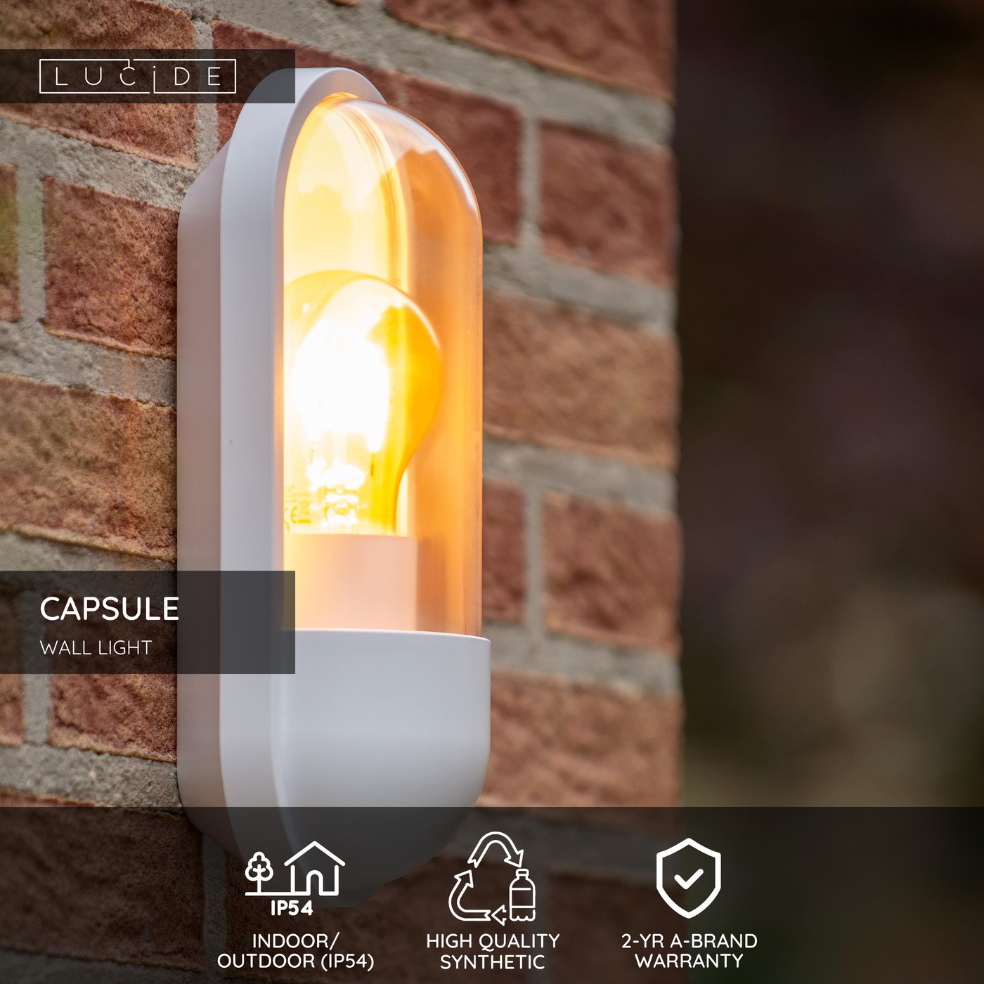 Не обманывайтесь названием. Capsule смело отражает суть, но ничуть её не скрывает. В этом эффектном фасадном светильнике, заключенном в овальную форму, источник света получает полную свободу действий. Благодаря своему вневременному дизайну, Capsule можно повесить где угодно. Можно разместить светильники Capsule в ряд на террасе, по обе стороны от входной двери или под навесом для автомобиля. Длина настенного светильника составляет почти 10 сантиметров, а высота — 24 сантиметра. Им легко управлять с помощью выключателя.