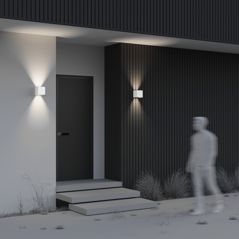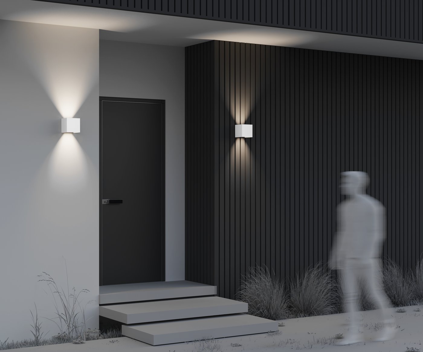 Этот настенный светильник воспринимается как архитектурный инструмент, собранный в строгом прямоугольном корпусе без декоративных деталей и лишней глубины. Его форма подчёркнуто нейтральна и работает как часть фасада или стены, а не как самостоятельный объект. В реальном использовании его устанавливают вдоль наружной стены или в галерее, где вечером при включении свет расходится вверх и вниз, формируя чёткую световую графику на поверхности. Такой жест позволяет управлять восприятием плоскости, вытягивая вертикаль или задавая ритм между проёмами. Встроенный LED-модуль даёт тёплый поток достаточной яркости, чтобы подсветка читалась с расстояния, не ослепляя проходящих рядом людей. Регулируемые шторки внутри корпуса позволяют точно настроить угол раскрытия пучка и добиться аккуратного рисунка света, который остаётся стабильным при постоянной уличной эксплуатации.