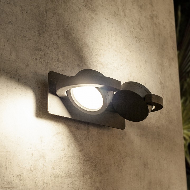 🆔 Уличный настенный светильник с двойным источником света в сером корпусе серый Iguazu by Mantra