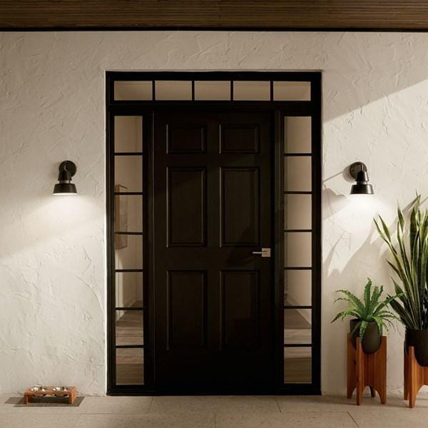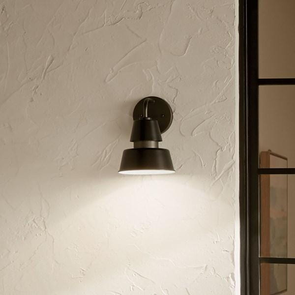 Настенный светильник из коллекции Lozano от Kichler сочетает современный индустриальный дизайн с функциональным уличным освещением. Корпус выполнен из черного металла, а внутренняя поверхность абажура покрыта глянцево-белой краской, отражающей свет и увеличивающей его яркость для подсветки входных зон, крыльца или фасада. Светильник рассчитан на одну лампу типа A19 с цоколем Medium, что позволяет использовать стандартные источники света для направленного и акцентного освещения. Ширина конструкции 178 мм и масса 0,5 кг обеспечивают удобство монтажа и надежное крепление на стене. Возможность эксплуатации во влажных условиях расширяет область применения на улице, обеспечивая безопасное и равномерное освещение. Дизайн с двойным конусным абажуром и внутренней отражающей поверхностью направляет свет вниз, создавая функциональное освещение и визуальный акцент на фасаде.