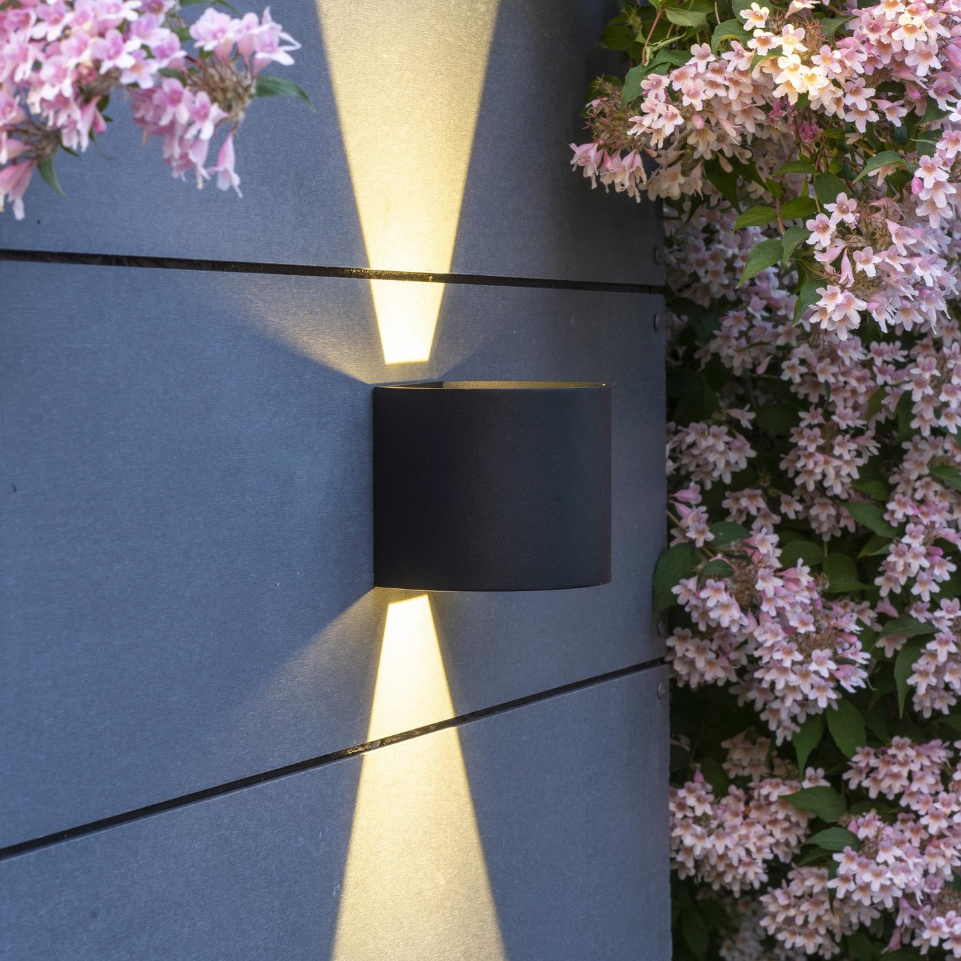 настенный уличный светильник цилиндрической формы с верхним выходом света