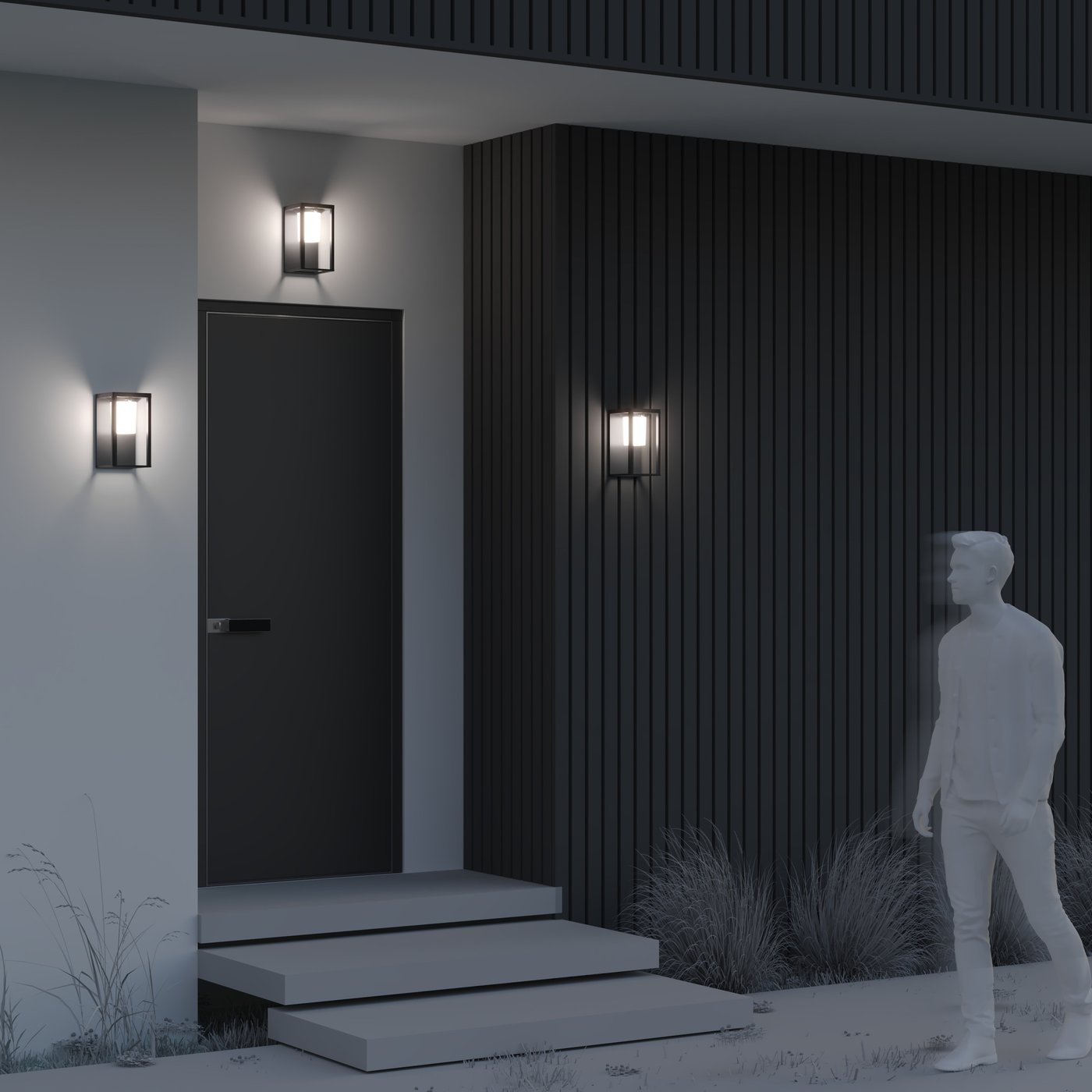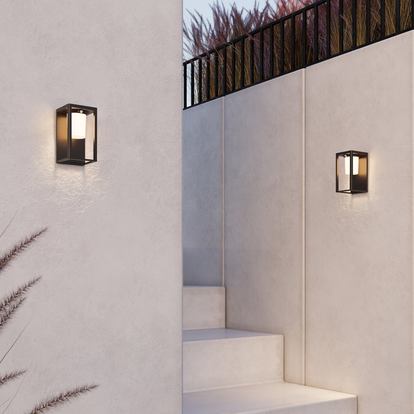 Настенный уличный светильник выполнен в виде компактного прямоугольного фонаря с открытой рамой и внутренним рассеивателем, который защищён корпусом, но остаётся визуально лёгким. В коллекции Shatter бренда Maytoni модель работает автономно: питание идёт от встроенной солнечной панели, поэтому для установки не нужны провода и подключение к сети. В реальном сценарии бра ставят у входной двери, на террасе или вдоль дорожки — когда человек подходит, срабатывает датчик движения и свет включается ровно на нужный момент, подсвечивая ступени и зону ручки без постоянного расхода энергии. Световой поток 150 лм рассчитан не на заливку участка, а на аккуратный акцентный свет рядом с фасадом. Тёплая температура 3000K делает подсветку спокойной и не даёт резкого «уличного» оттенка, а широкий угол 151° распределяет свет без жёсткого пятна. Мощность LED-модуля 2 Вт и работа до 14 часов без подзарядки позволяют светильнику стабильно выполнять задачу навигации вечером, а степень защиты IP54 рассчитана на дождь и пыль.