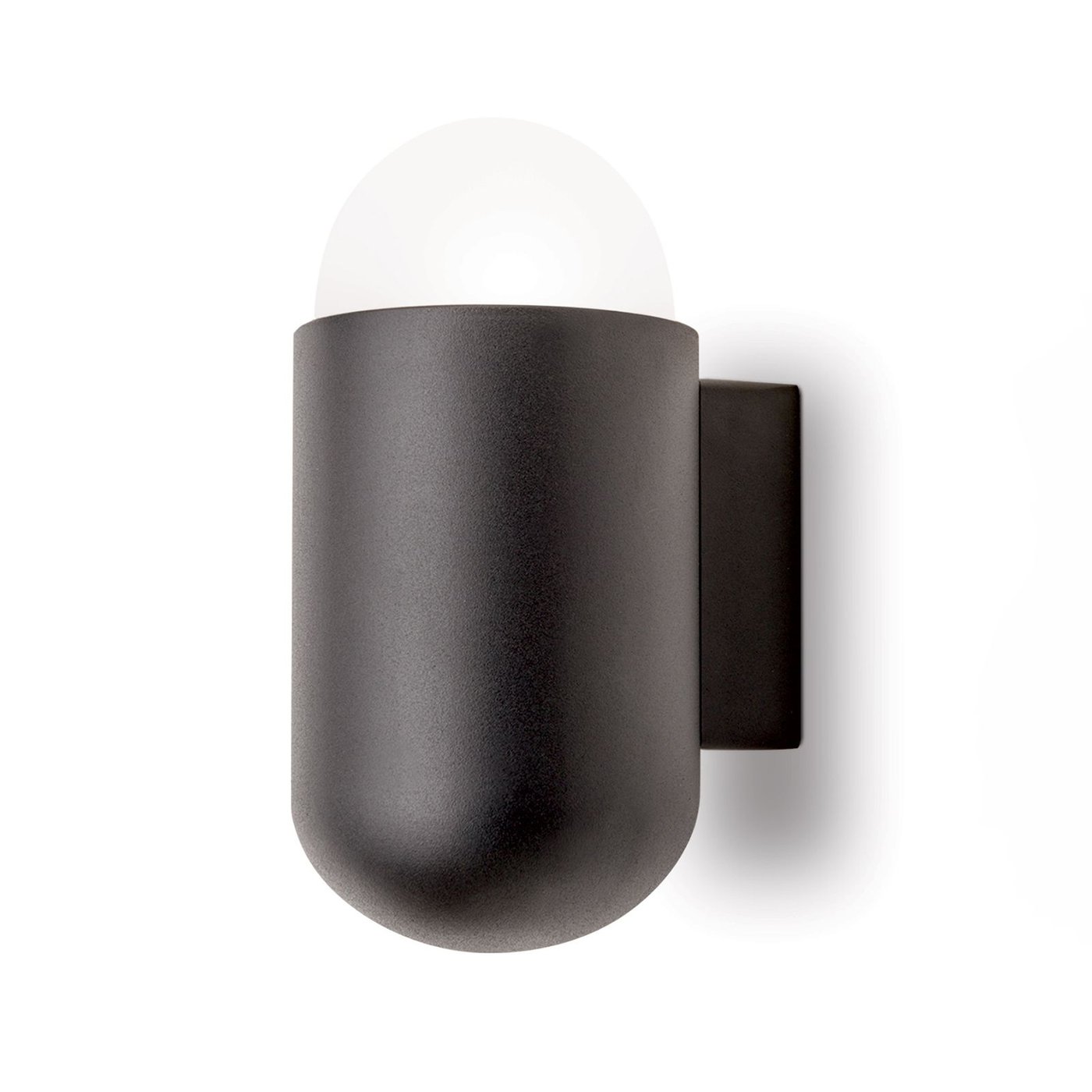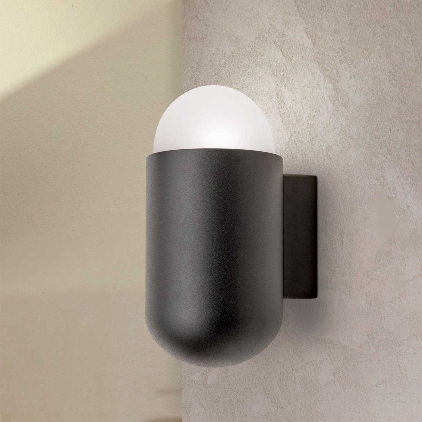 уличный настенный светильник с овальным корпусом и полусферическим опаловым плафоном