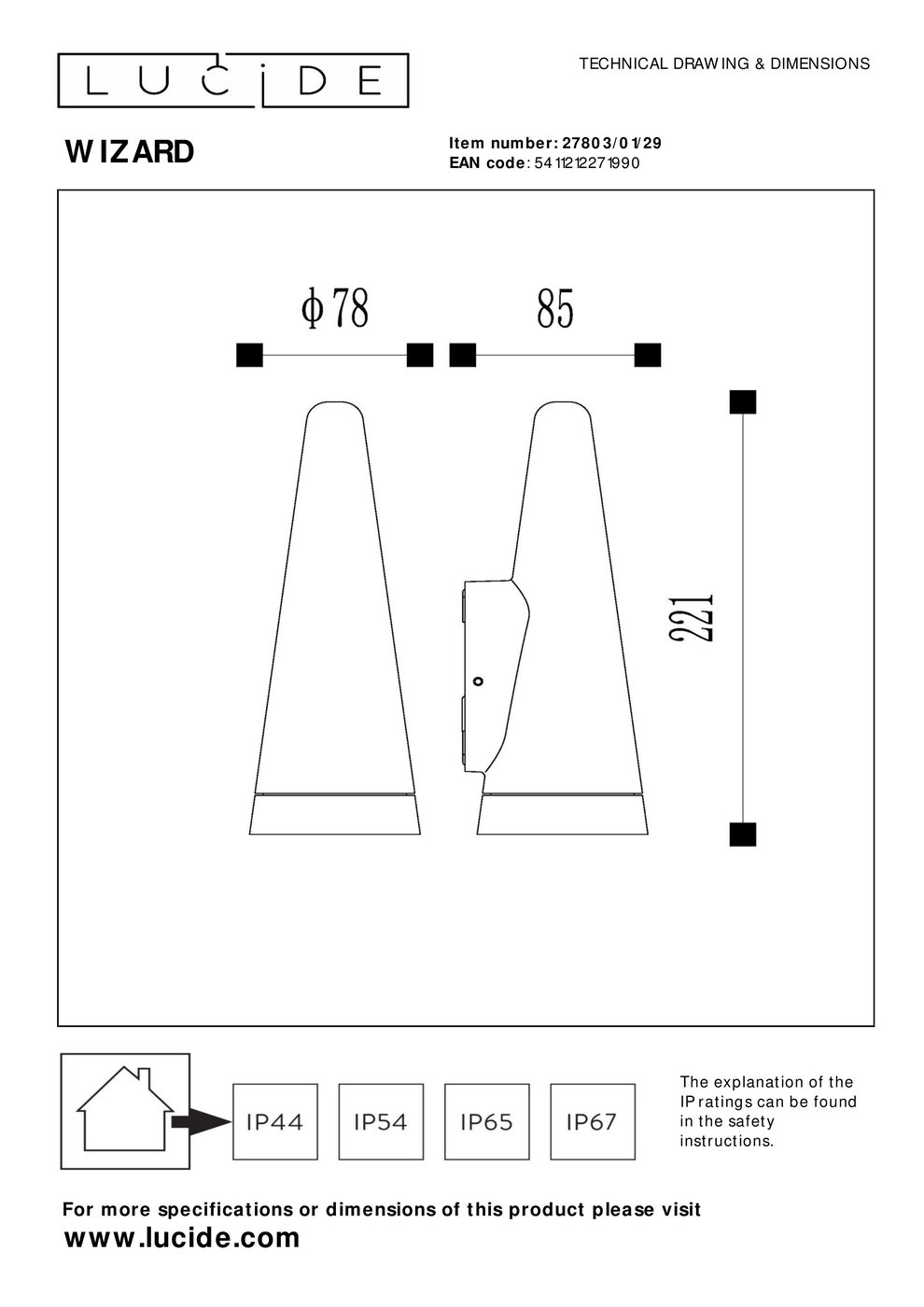 27803/01/29 Lucide Wizard уличный настенный светильник