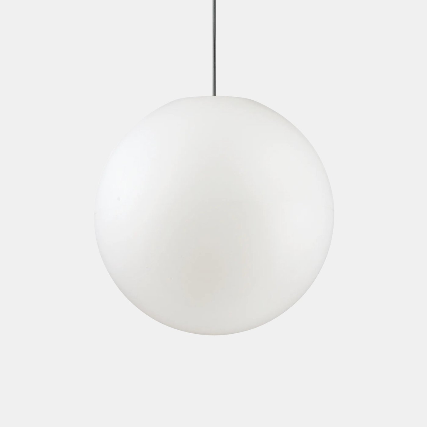 Подвесной светильник Ideal Lux из коллекции Sole в версии Big выполнен в виде крупной опаловой сферы с алюминиевым основанием и подвесом на ПВХ-кабеле. Большой диаметр плафона позволяет свету от лампы с цоколем E27 мощностью до 42 Вт равномерно заполнять объём и формировать насыщенный основной свет в гостиной, столовой или просторном холле. При включении свет распространяется мягким кругом по полу и стенам, а человек, находящийся под подвесом, видит однородную светящуюся поверхность без выраженного центра яркости. Пластиковый рассеиватель OPAL сглаживает тени и делает освещение визуально спокойным, что важно для повседневного сценария использования. Степень защиты IP44 допускает размещение в помещениях с повышенной влажностью и защищает источник света от брызг. Подключение к сети 220–240 В не требует дополнительного драйвера и упрощает монтаж.