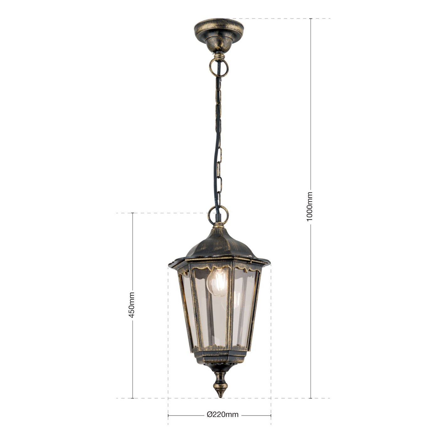 🆔 Уличный подвесной фонарь с дымчатым стеклом и металлическим корпусом на цепи золото, черный Puchberg by Orion