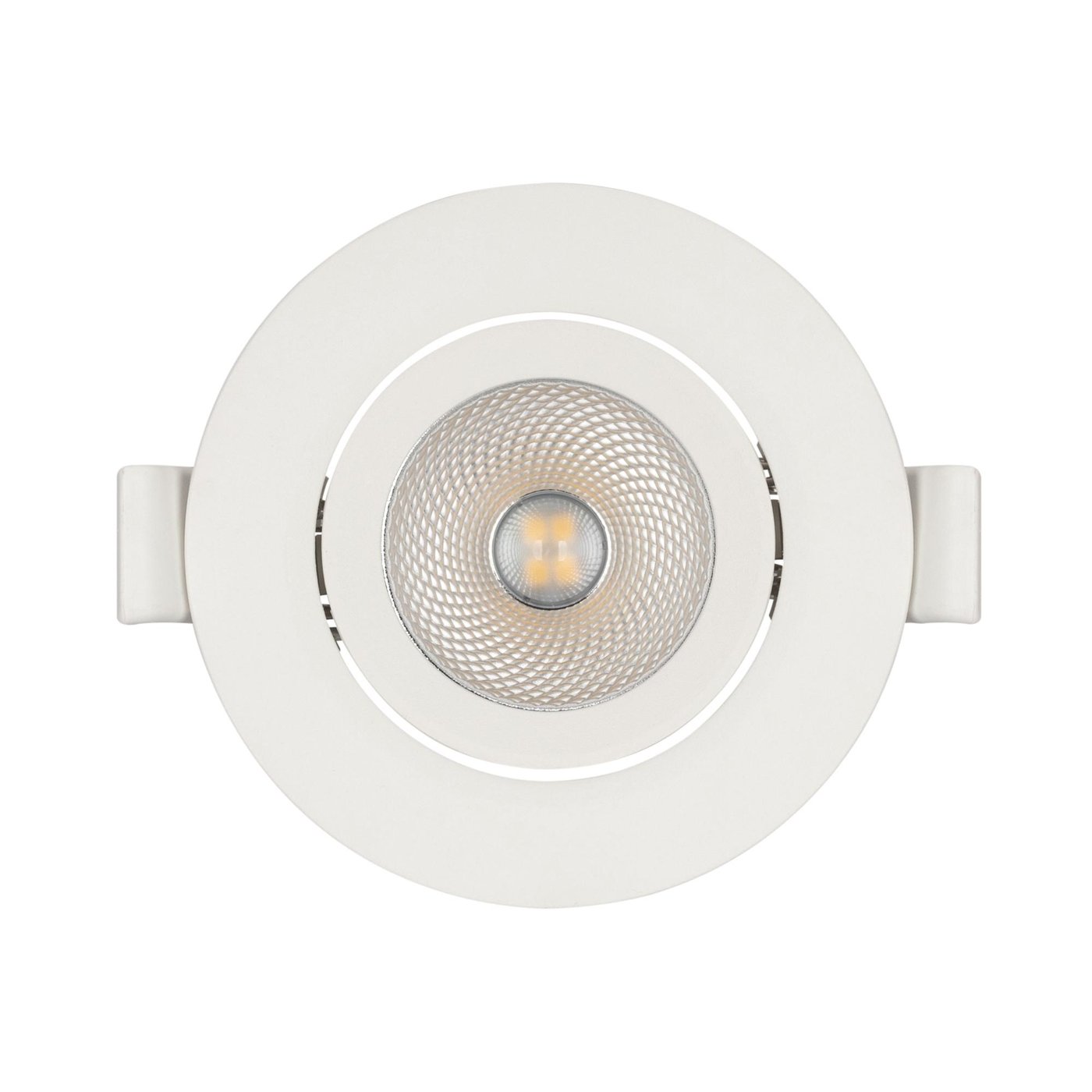 Встраиваемый поворотный светильник LTD-POLAR-TURN-R80-5W Warm3000 (WH, 36 deg, 230V) мощностью 4.5 Вт, с теплым цветом свечения (3000 К) и низким коэффициентом дискомфорта UGR<19, благодаря чему достигается комфортный индекс освещенности. Светильник с цветопередачей CRI>80, световым потоком 400 лм и узким углом излучения 36° предназначен для направленного освещения торговых, офисных, жилых и других помещений. Световой модуль может отклоняться на 30°, позволяя мгновенно менять направление света. Светильник легко устанавливается с помощью пружин в монтажное отверстие Ø 60-70 мм. Благодаря встроенному драйверу светильник безопасно и быстро подключается напрямую к сети переменного тока 230 В.