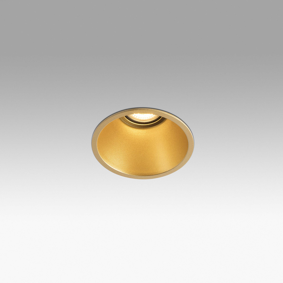 Круглый встраиваемый потолочный светильник с глубокой посадкой источника формирует направленный пучок света и визуально растворяется в плоскости потолка. В коллекции FRESH от Faro Barcelona модель выполнена в матовом золотом оттенке, который смягчает контраст и добавляет тёплый рефлекс вокруг светового отверстия. Такой downlight подходит для локального освещения в санузле, коридоре или над стойкой ресепшена: при движении по помещению свет концентрируется на полу или рабочей поверхности, не слепит и не рассеивается в стороны. Корпус из литого алюминия диаметром 90 мм устанавливается в вырез Ø83 мм, что упрощает интеграцию в стандартные потолочные конструкции. Патрон GU10 рассчитан на LED-лампу до 8 Вт, позволяя выбрать нужную цветовую температуру и угол рассеивания под конкретную задачу. Степень защиты IP44 и питание 100–240 В обеспечивают стабильную работу во влажных зонах и в коммерческих пространствах с переменной нагрузкой.