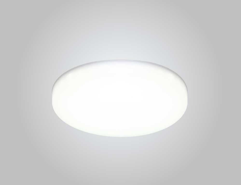 Этот встраиваемый светильник работает как мощный базовый источник света, сведённый к простой круглой форме с равномерно светящейся плоскостью. Он не акцентирует на себе внимание и читается как часть потолка, оставляя в фокусе освещённое пространство, а не сам прибор. В интерьере его включают вместе с основной группой — например, когда вечером требуется быстро получить уверенный уровень света в кухне, коридоре или рабочей зоне без дополнительных сценариев. Широкое распределение света заполняет помещение ровно, без выраженных пятен и резких переходов между зонами. Встроенный LED-модуль выдаёт поток около 2420 лм с нейтральной температурой 4000 K, обеспечивая высокую освещённость при компактных габаритах. Такая мощность делает его уместным там, где один прибор должен заменить несколько точечных источников и работать стабильно в течение всего дня.
