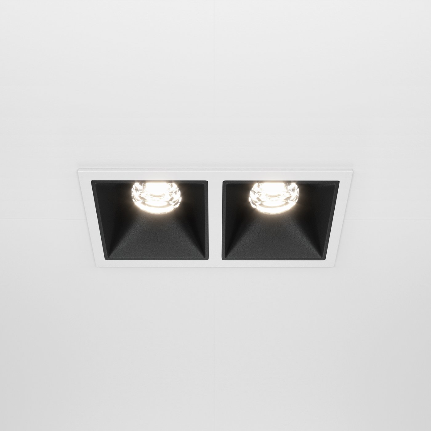 встраиваемый потолочный светильник с двумя утопленными источниками света белого цвета