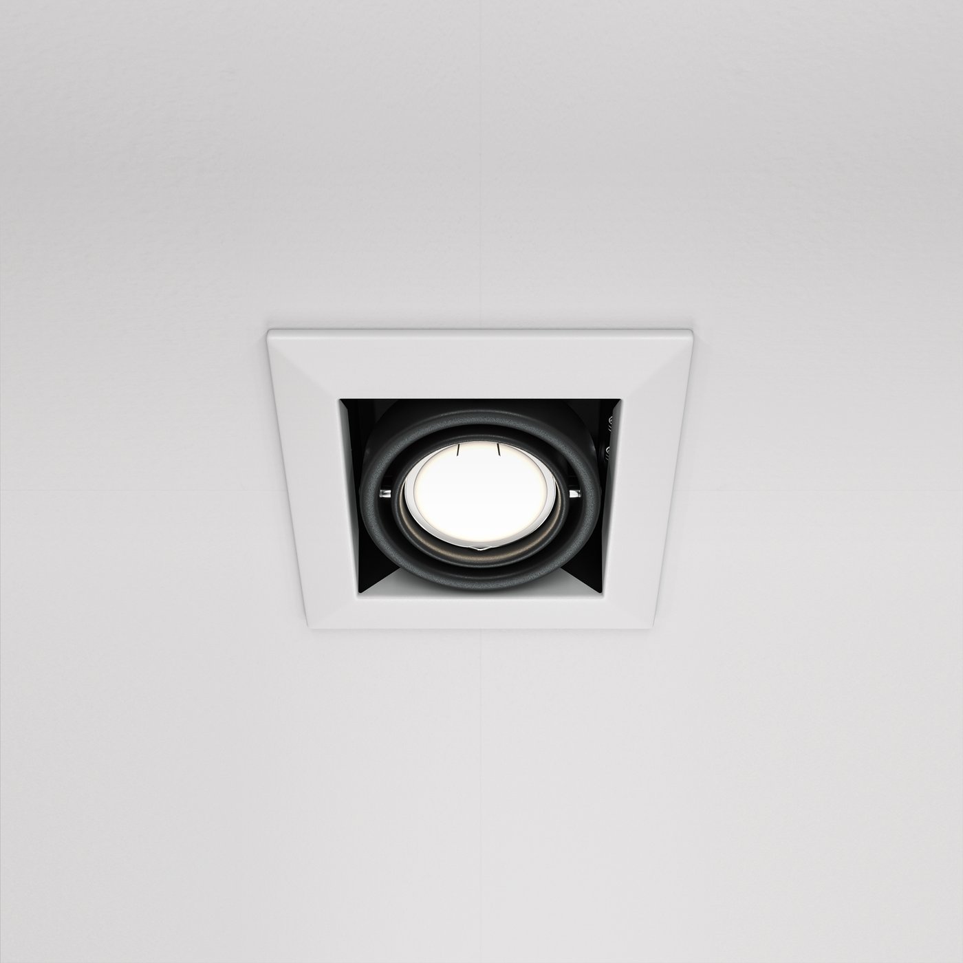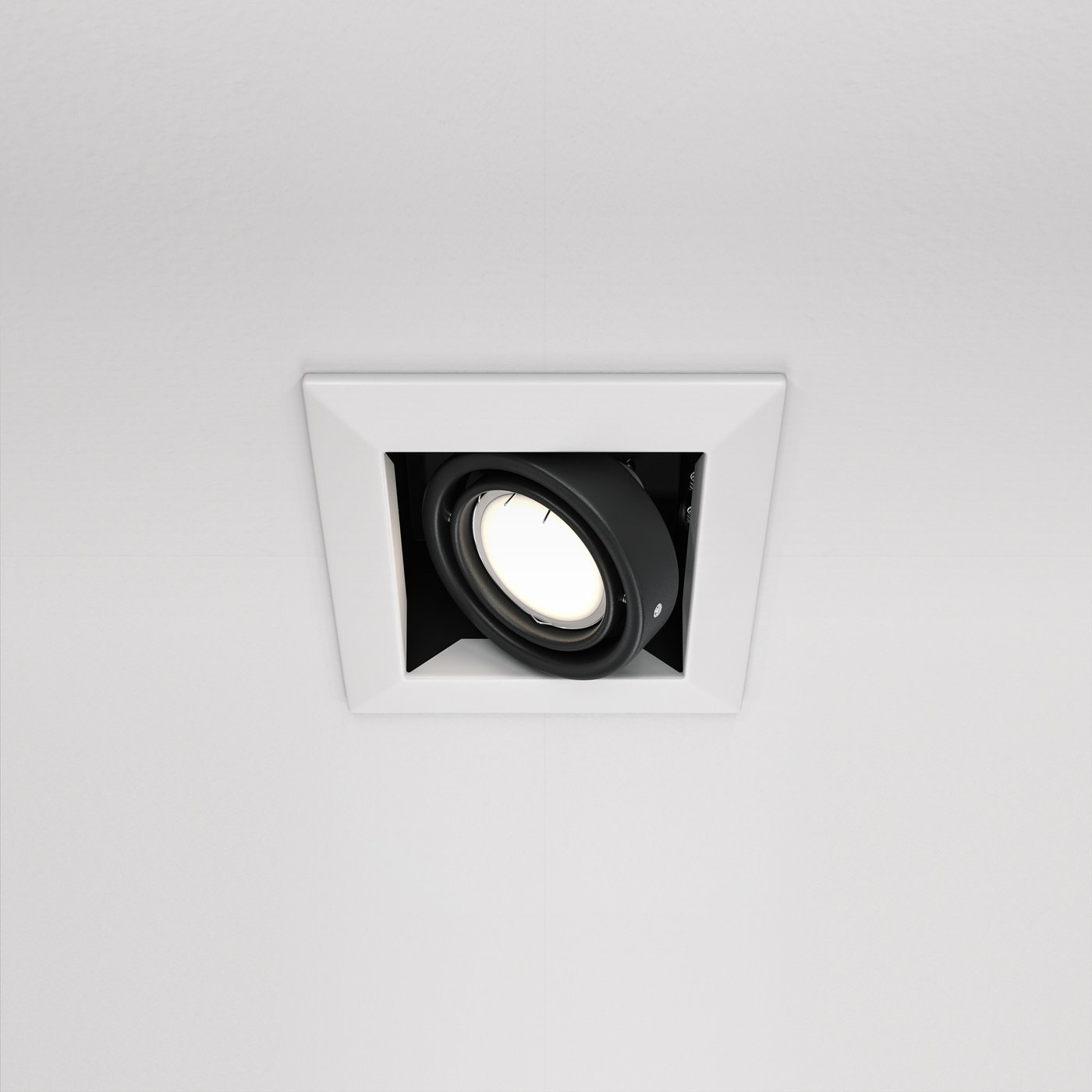 Этот встраиваемый светильник читается как точный рабочий инструмент с чёткой квадратной рамкой и утопленным источником, где форма служит контролю света, а не декору. Глубокая посадка оптики снижает слепимость и делает световой пучок собранным, подчёркивая технический характер модели. В интерьере он проявляется в момент включения, когда вы проходите вдоль коридора или освещаете рабочую зону и получаете направленный свет без рассеянной заливки потолка. При мощности около 10 Вт поток формируется плотным и управляемым, подходящим для акцентного или функционального сценария. Поворотный узел позволяет точно навести свет на нужную поверхность и зафиксировать положение без смещений. Такой светильник уместен там, где важны геометрия потолка, контроль направления и предсказуемый результат при каждом включении.