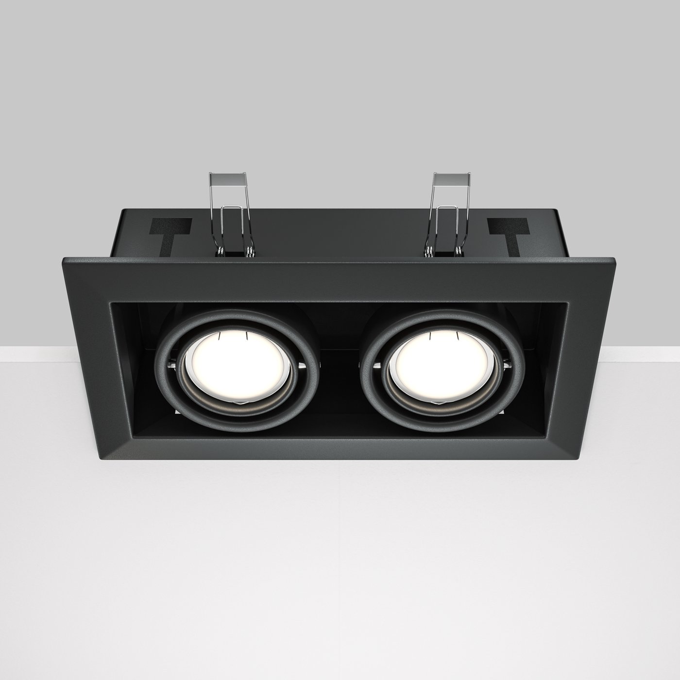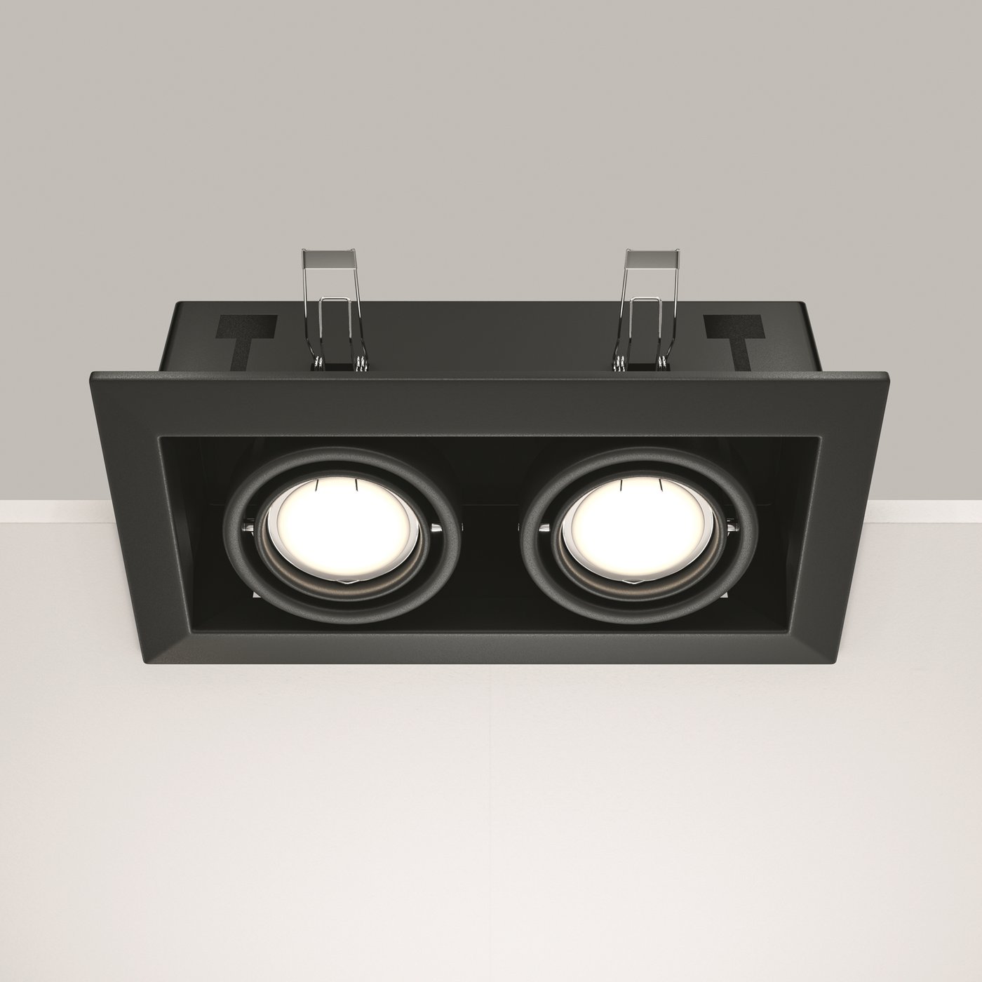 двухламповый встраиваемый потолочный светильник черного цвета