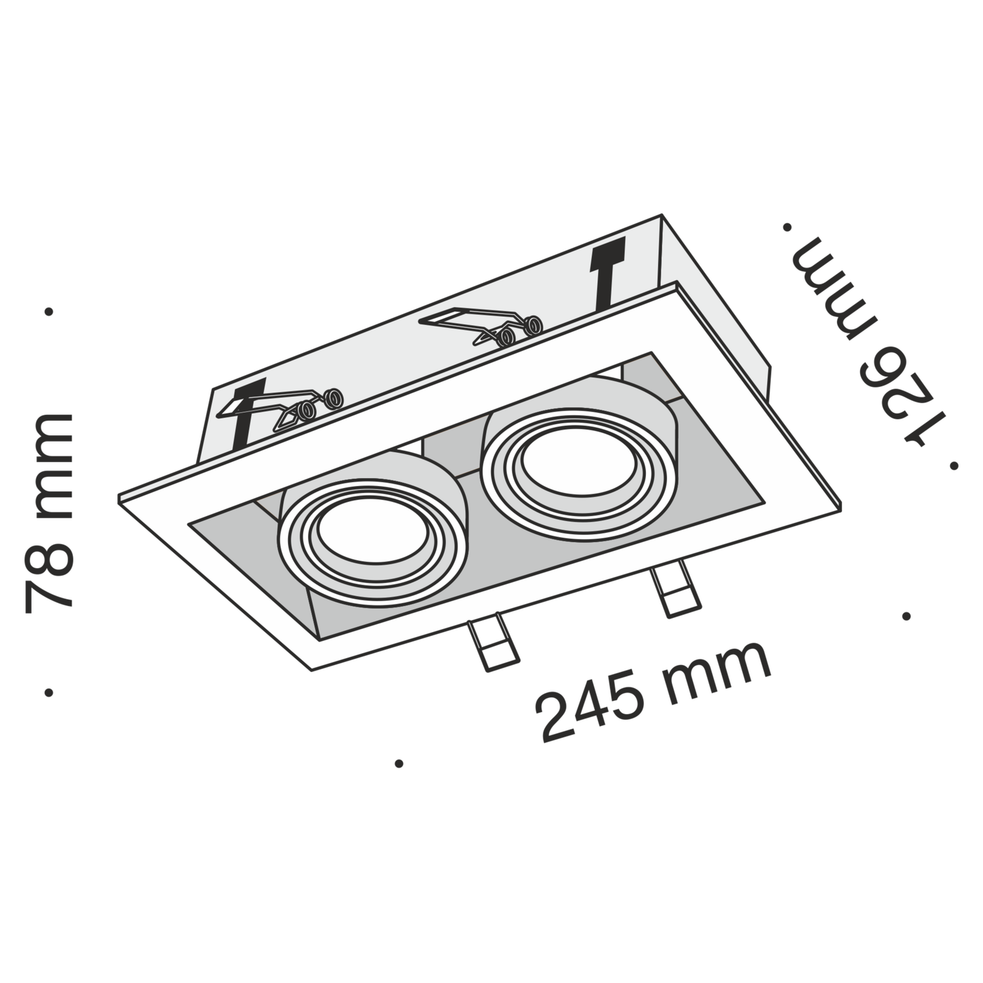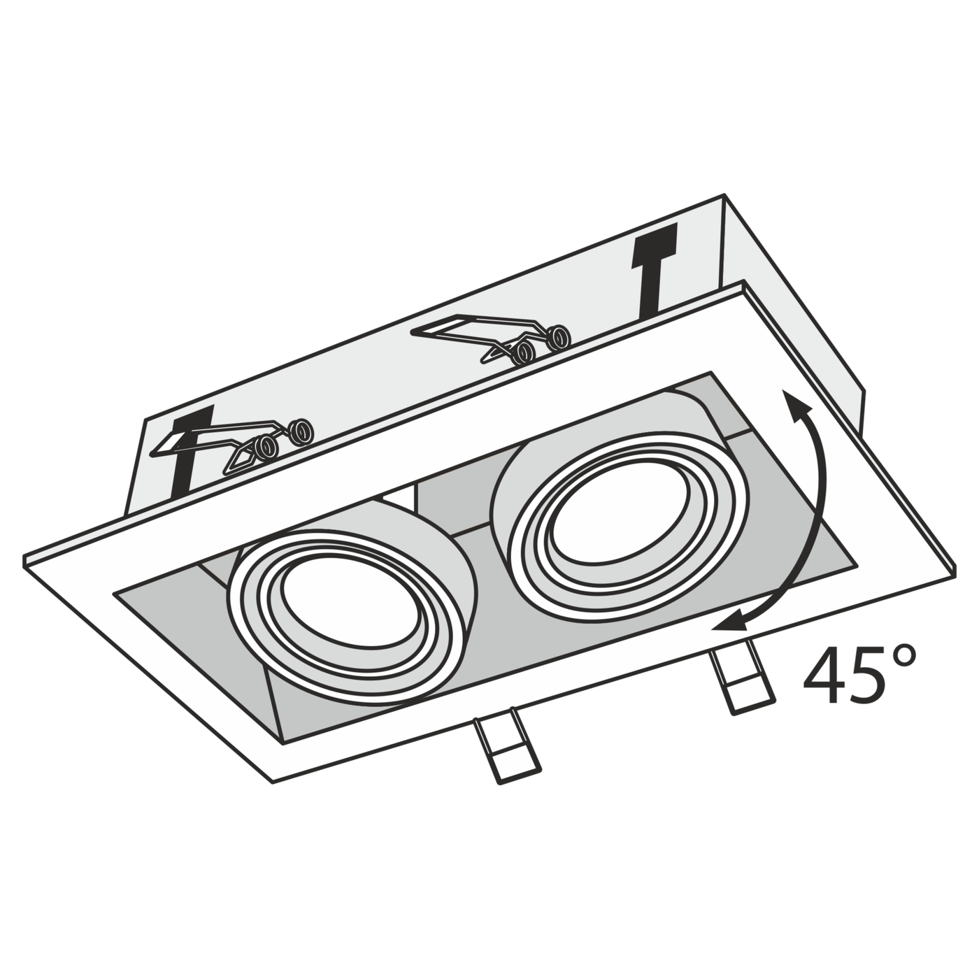 двухламповый встраиваемый потолочный светильник с наклонными корпусами