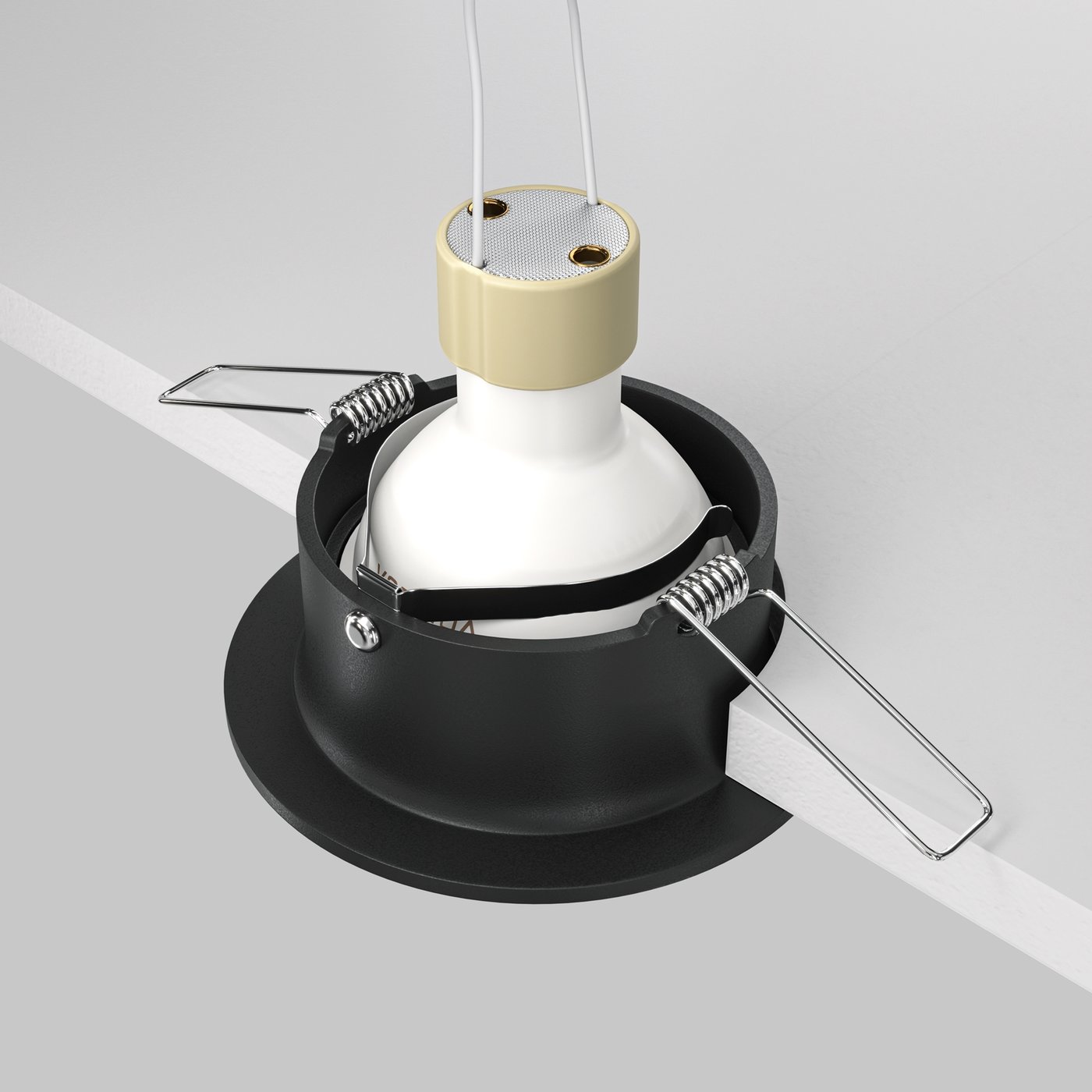 встраиваемый потолочный светильник черного цвета с округлым корпусом