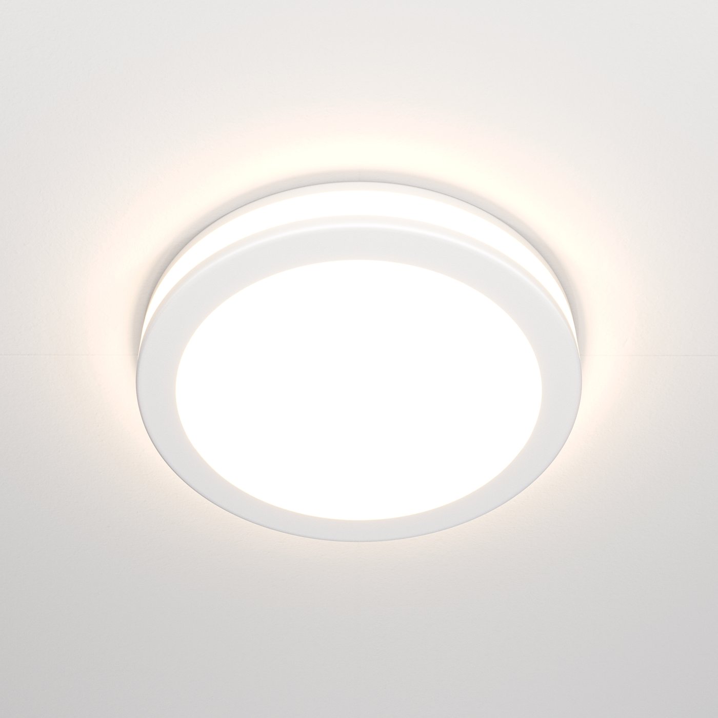 встраиваемый потолочный светильник с белым корпусом и матовым экраном
