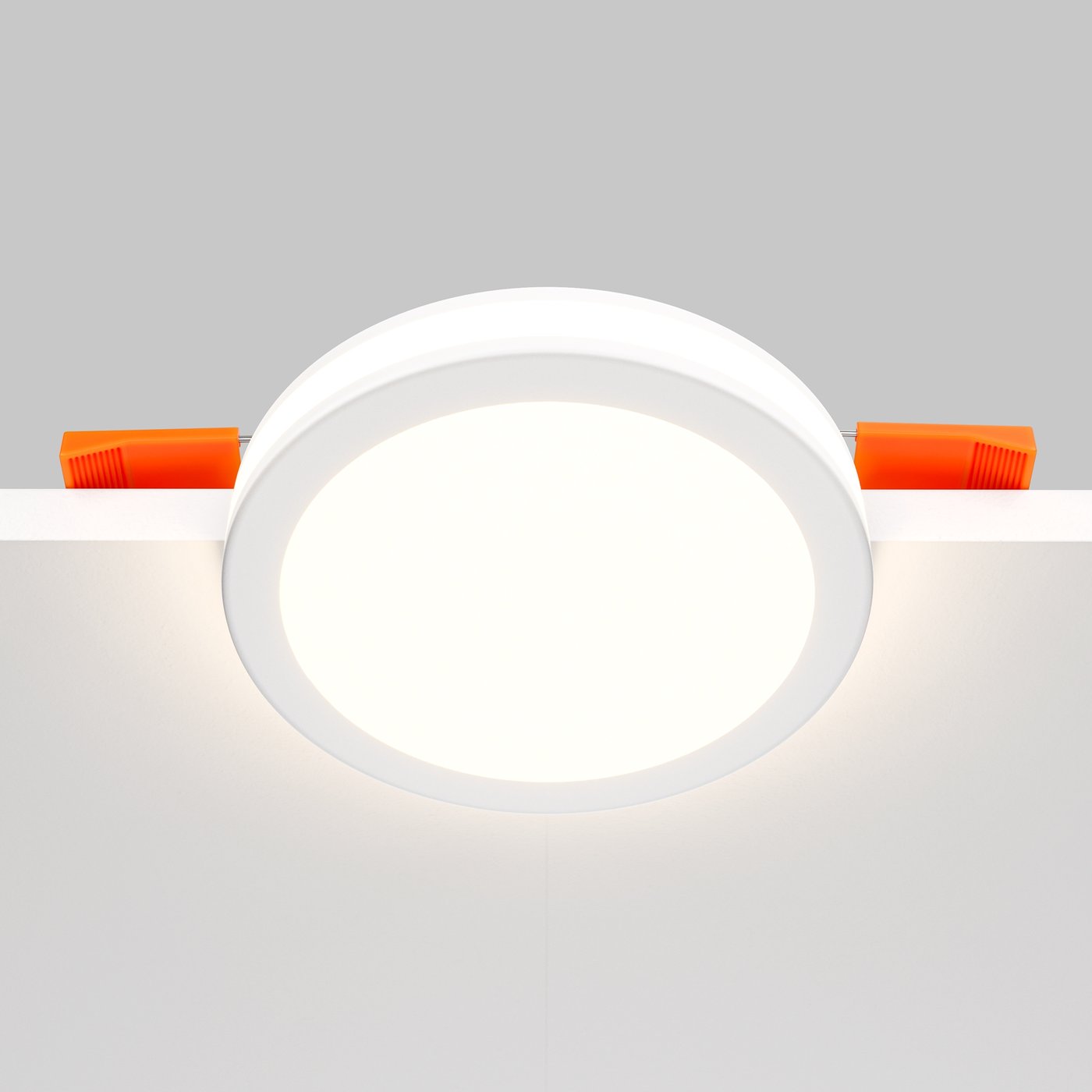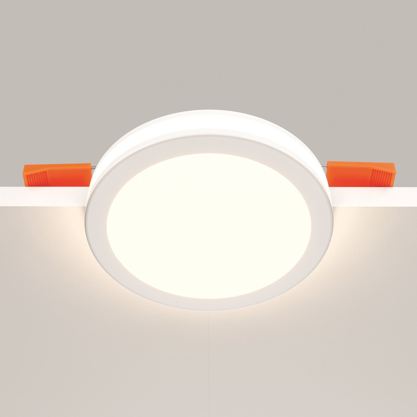 Встраиваемый даунлайт выполнен в виде плоского круглого модуля с матовым рассеивателем, поэтому после установки в потолке остаётся аккуратная светящаяся поверхность без выступающих деталей. В серии Maytoni Phanton такая конструкция рассчитана на основное освещение небольших помещений или на равномерную сетку светильников в более просторной комнате. Широкий угол 120° позволяет свету распределяться без резкого центра, и при перемещении по пространству освещённость ощущается стабильной. Мощность 12 Вт и световой поток 750 лм дают более заметную яркость по сравнению с младшими моделями серии, поэтому один светильник способен полноценно подсветить зону кухни, коридора или санузла. Тёплая температура 3000K создаёт комфортный бытовой оттенок, не искажая интерьер холодным спектром. Глубина всего 30 мм подходит для тонких потолочных конструкций, а монтажное отверстие 75 мм упрощает установку и замену. Алюминиевый корпус обеспечивает теплоотвод и стабильную работу LED-модуля при ежедневном использовании.