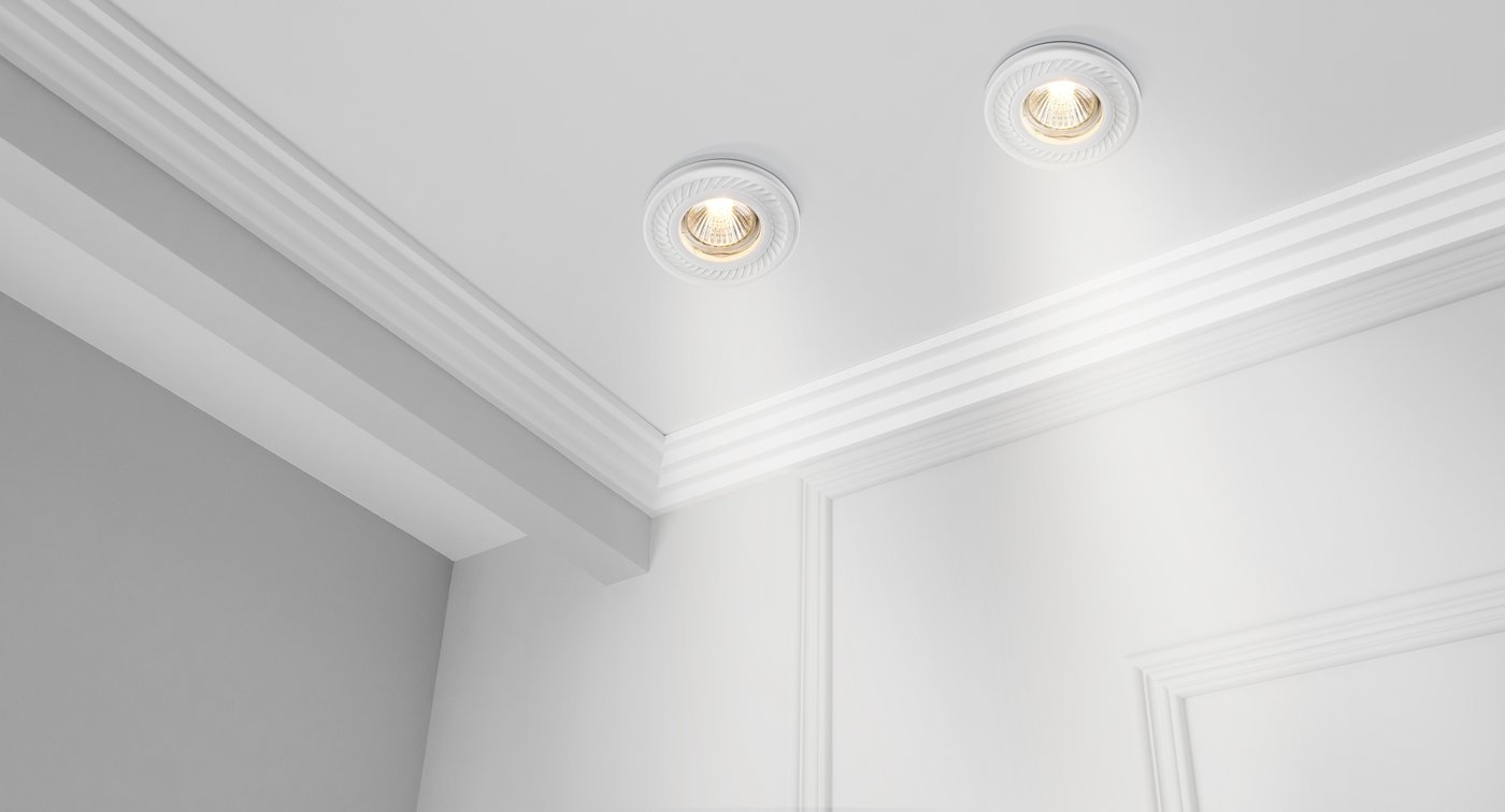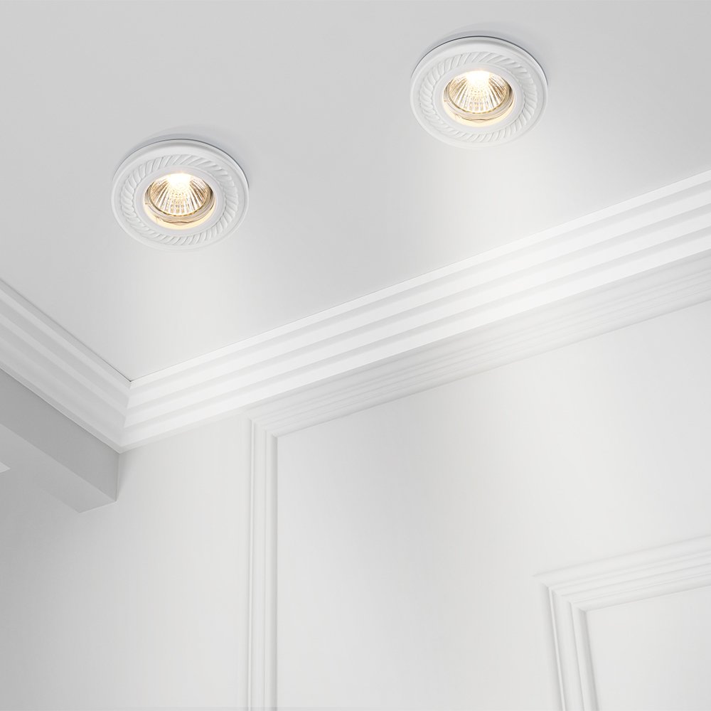 Встраиваемый светильник выполнен как классический круглый даунлайт с рельефным орнаментом, который выглядит как часть лепного декора и не спорит с потолочными карнизами. В коллекции Maytoni Gyps Classic корпус сделан из белого гипса, поэтому модель можно красить вместе с потолком и добиться эффекта «встроенной архитектуры», когда заметным остаётся только свет. Внутри используется сменная лампа GU10: это удобно, если нужно подобрать конкретную яркость и угол луча под задачу — например, сделать акцентный свет на картине или подсветить проход вдоль стены. Глубина установки 86 мм позволяет спрятать светильник в стандартной потолочной конструкции, сохранив аккуратный внешний вид без выступающих деталей. Максимальная мощность до 35 Вт даёт запас по свету для локальных зон, а при использовании LED-лампы можно получить яркий поток без лишнего нагрева. Степень защиты IP20 рассчитана на сухие помещения, где важна декоративная интеграция и управляемая направленность света.