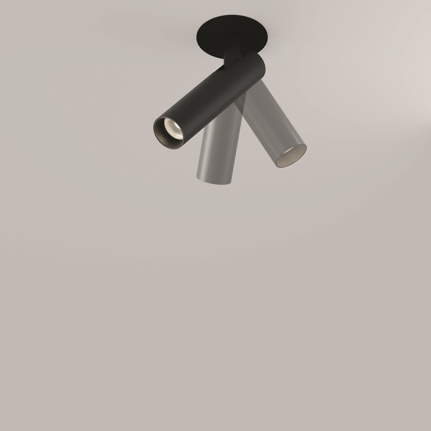 Встраиваемый потолочный светильник выполнен как компактный цилиндрический спот на поворотном механизме, который выходит из потолка минимально и даёт направленный пучок света. В модели Maytoni из коллекции Focus T источник утоплен внутрь корпуса, поэтому при взгляде снизу свет не слепит и остаётся визуально «чистым». В реальном сценарии это удобно для подсветки картины, стеллажа или рабочей зоны на кухне: человек перемещается вдоль стены, а направление света можно точно подстроить поворотом на 355° по горизонтали и 90° по вертикали. Угол рассеивания 36° формирует собранное пятно без лишней засветки потолка, поэтому светильник хорошо работает как акцентный свет в системе из нескольких точек. Световой поток 330 лм рассчитан на локальную задачу, а тёплая температура 3000 K делает свет комфортным в жилых помещениях. Индекс цветопередачи CRI 90 помогает корректно передавать оттенки дерева, текстиля и предметов в зоне подсветки. Монтажное отверстие 55 мм позволяет аккуратно встроить модель даже в потолки с ограниченным пространством.