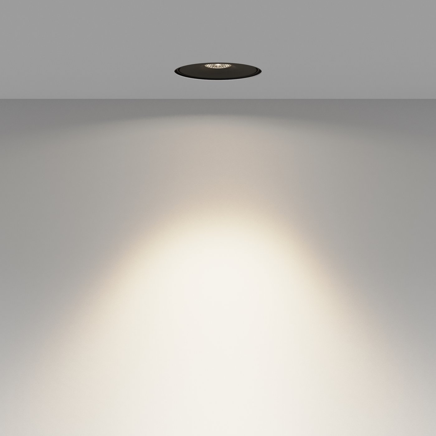 Встраиваемый светильник Maytoni Move выглядит как чётко выверенный технический элемент с выразительным чёрным корпусом и глубоко посаженной оптикой, которая сразу задаёт ощущение профессионального инструмента. Его форма лаконична, но не нейтральна: поворотный модуль добавляет конструкции динамики и подчёркивает архитектурный характер света. Такой светильник органично вписывается в современные жилые интерьеры, где важно работать с направлением и акцентами, — в гостиных, кухнях, коридорах и зонах с разным функционалом, объединённых единым потолочным решением. Он позволяет точно управлять световым потоком, выделяя поверхности, предметы или рабочие зоны без визуального шума. Встроенный светодиод мощностью 9 Вт даёт сфокусированный свет с узким углом рассеивания и высоким индексом цветопередачи, благодаря чему материалы и оттенки в интерьере выглядят естественно. Переключаемая цветовая температура расширяет сценарии использования, а алюминиевый корпус обеспечивает стабильную работу и аккуратный внешний вид при длительной эксплуатации.