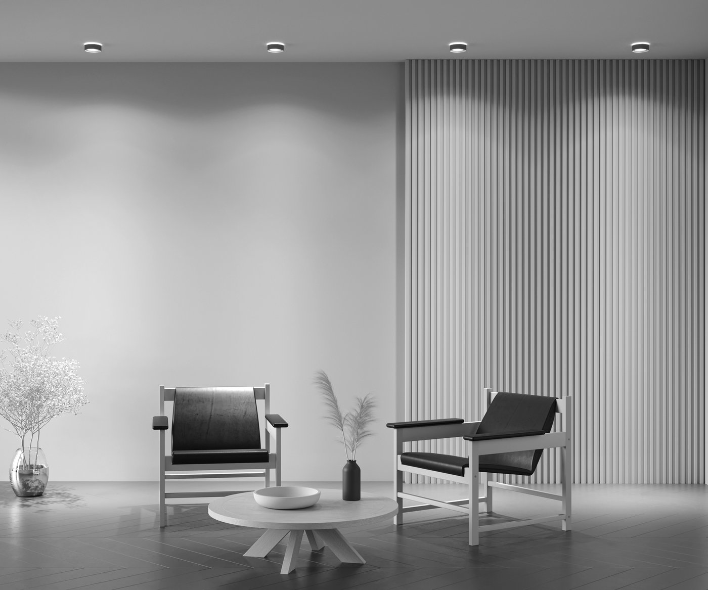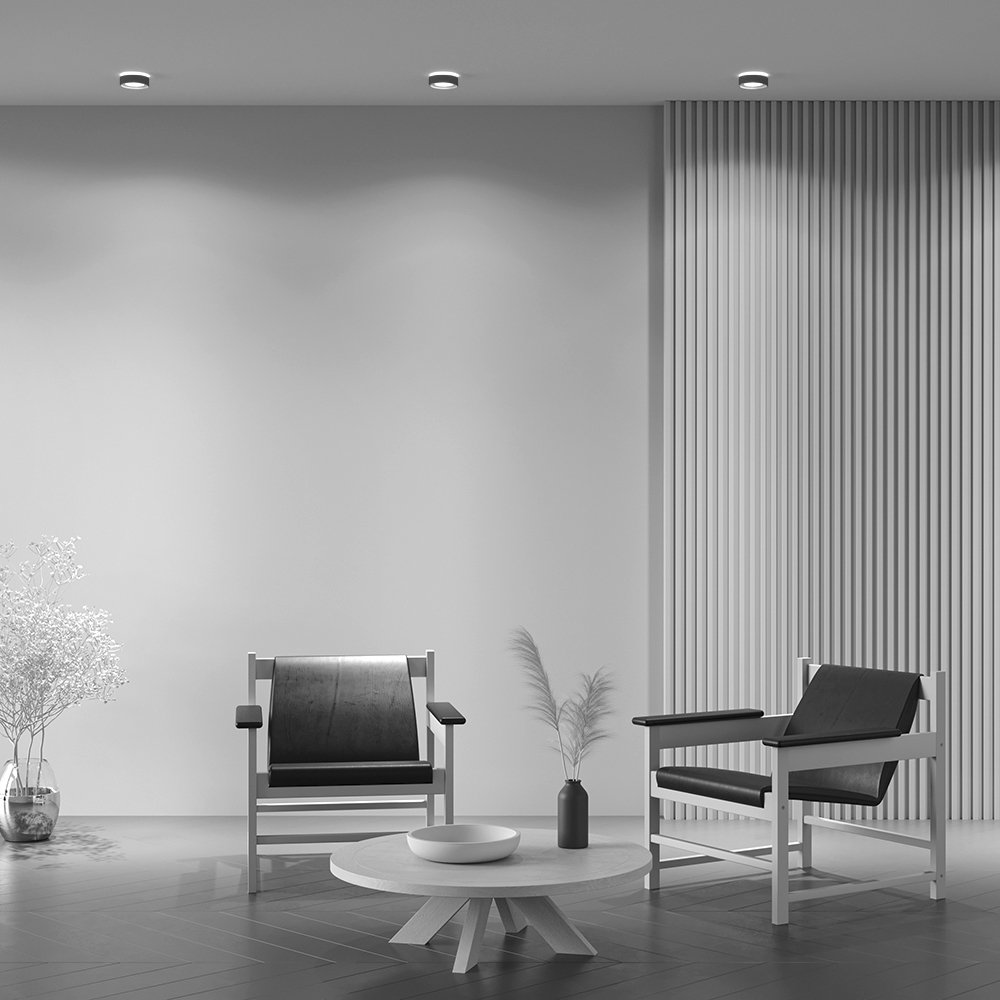 Встраиваемый downlight выполнен в компактном цилиндрическом корпусе с глубокой посадкой источника, поэтому свет выходит из «чёрной чаши» и меньше слепит при взгляде снизу. В серии Maytoni Planet такая конструкция рассчитана на акцентный свет: узкий угол 36° формирует собранное пятно и позволяет подсветить конкретную зону без лишней засветки потолка. В реальном сценарии светильник ставят над картиной, столешницей или участком стены, и при движении по комнате взгляд не цепляется за яркий диод, потому что он утоплен в корпус. Световой поток 670 лм при мощности 11 Вт даёт заметную яркость для одной точки, сохраняя управляемость распределения света. Нейтральная температура 4000 К подходит для рабочих сценариев и подчёркивает фактуру материалов без тёплого оттенка. Высокий индекс цветопередачи Ra 90 важен, чтобы цвета отделки и предметов выглядели естественно при направленном освещении. Глубина встройки 40 мм и монтажное отверстие Ø55 мм позволяют использовать модель в тонких потолочных конструкциях.