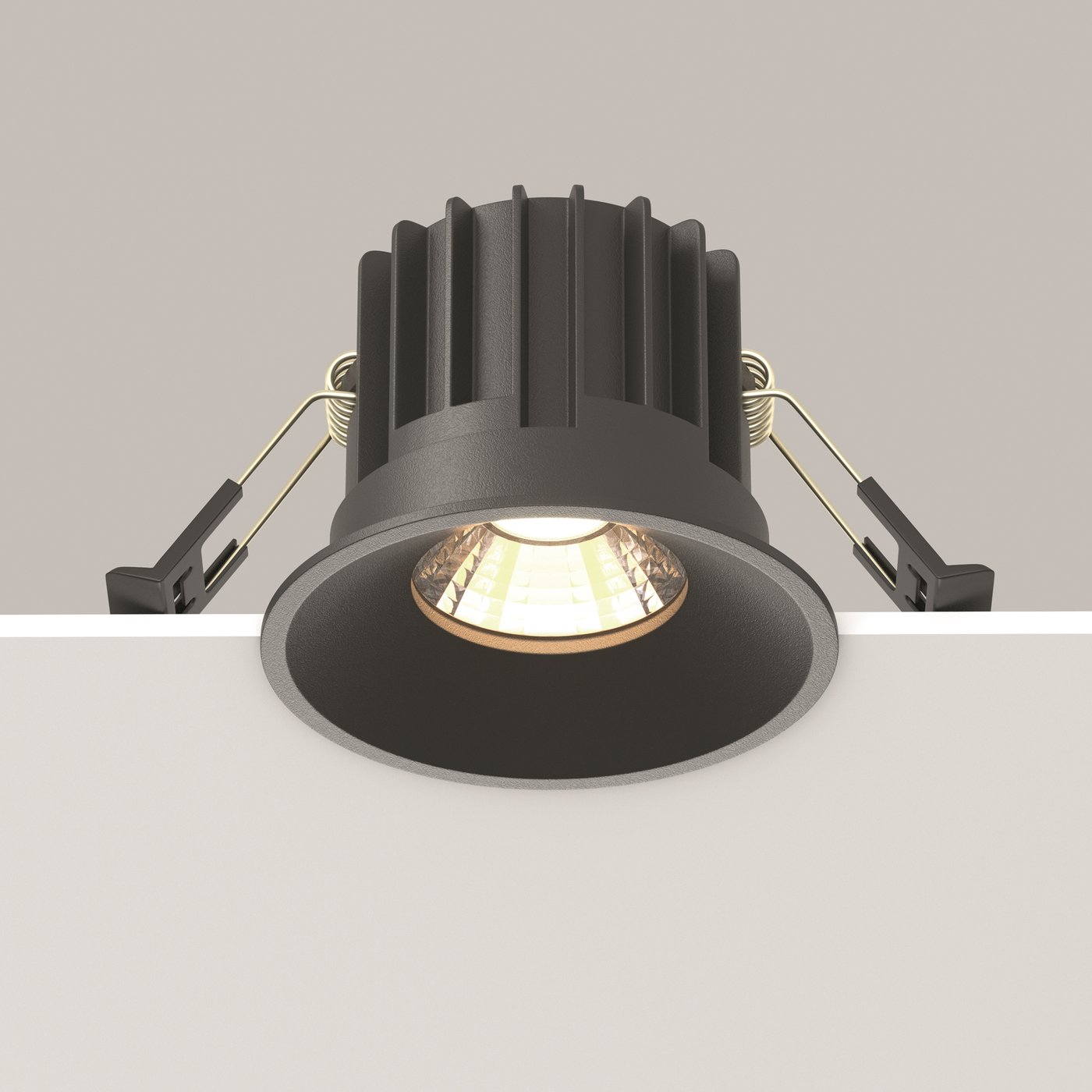 встраиваемый потолочный светильник черного цвета с алюминиевым радиатором