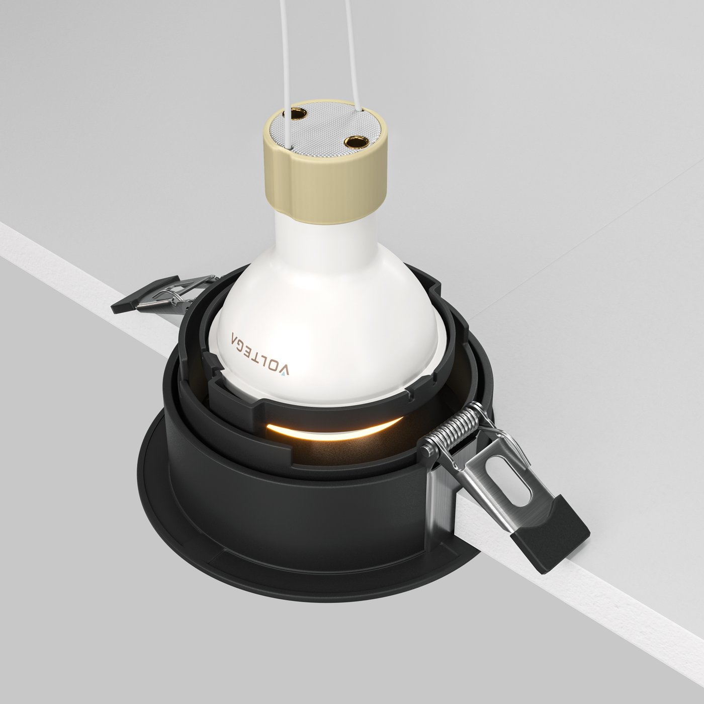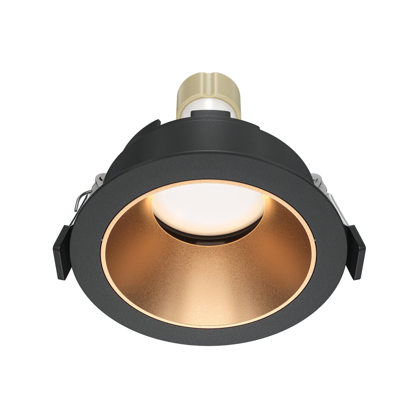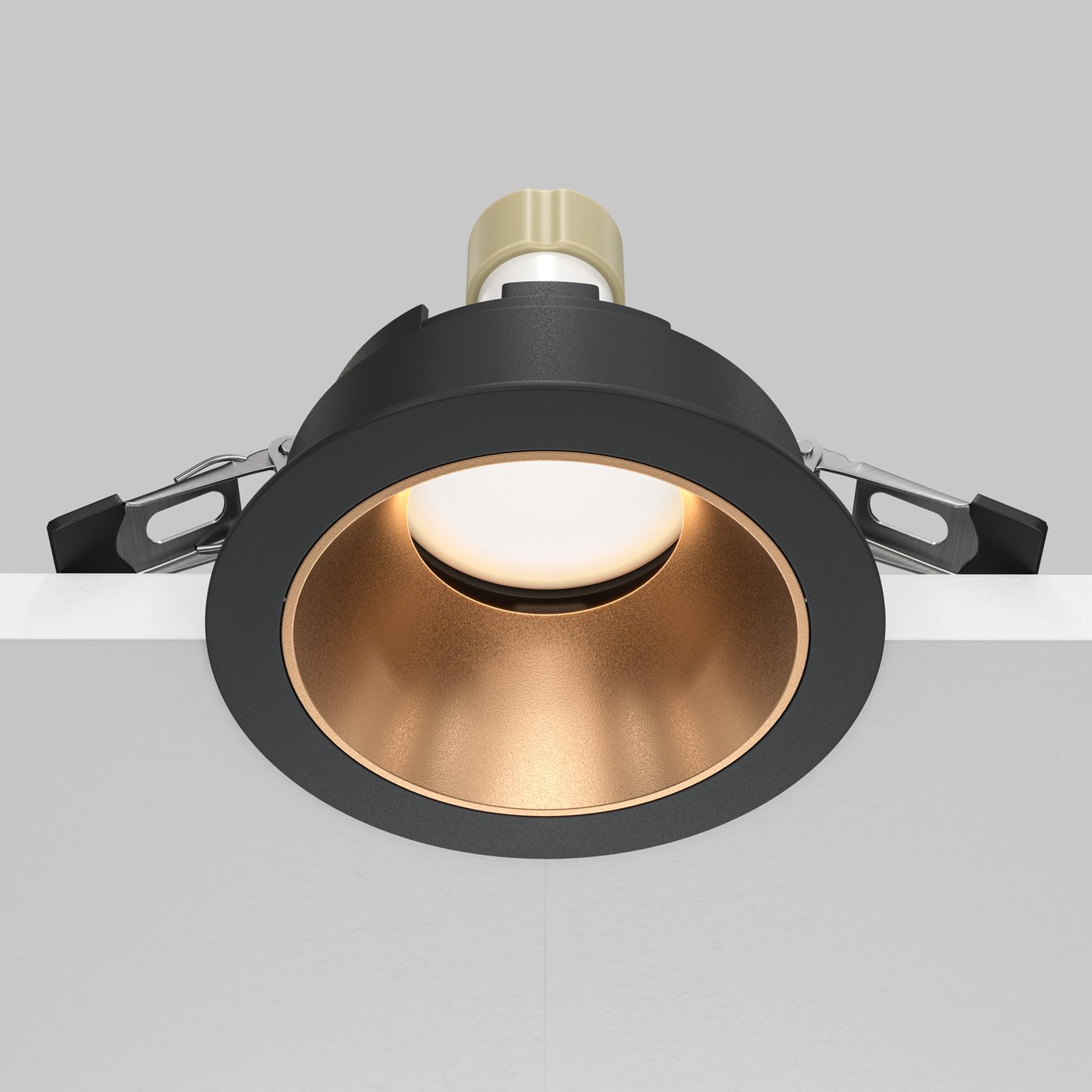 встраиваемый потолочный светильник черного цвета с медным отражателем
